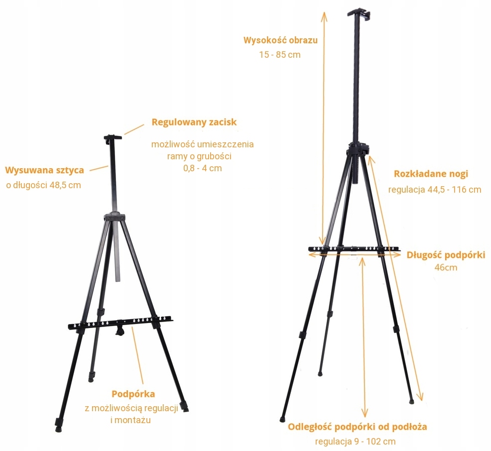 Prezentujemy Państwu rewelacyjną mobilną sztalugę malarską. Jest bardzo stabilna i estetyczna, wykonana z lekkiego wzmocnionego aluminium w kolorze czarnym. Lekka, wysoka i bardzo funkcjonalna, doskonała do malowania w domu lub w plenerze, pozwala elegancko prezentować swoje prace - zdjęcia, obrazy, grafiki.