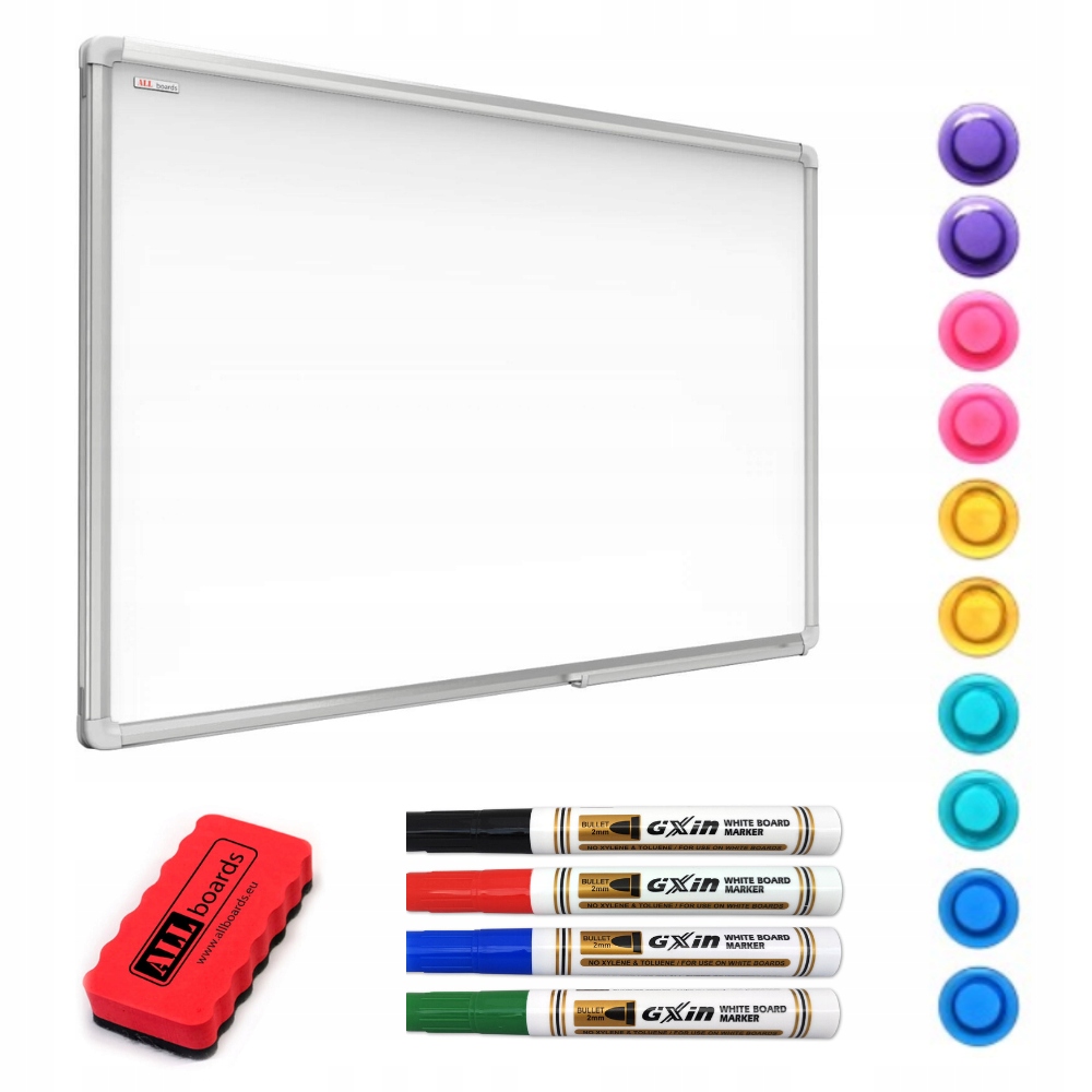 Белая магнитная доска ALLboards изготовлена из жесткий и прочный лист, благодаря которому доска приобретает магнитные свойства. Жесть он покрыт слоем лака, который придает доске белый цвет и гладкость и блеск поверхности. с помощью губки или бумажного полотенца, входящего в комплект.