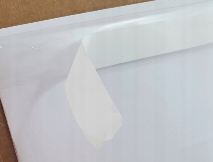 Jedna strona koperty pokryta jest mocnym klejem, który umożliwia przyklejenie do każdej powierzchni.