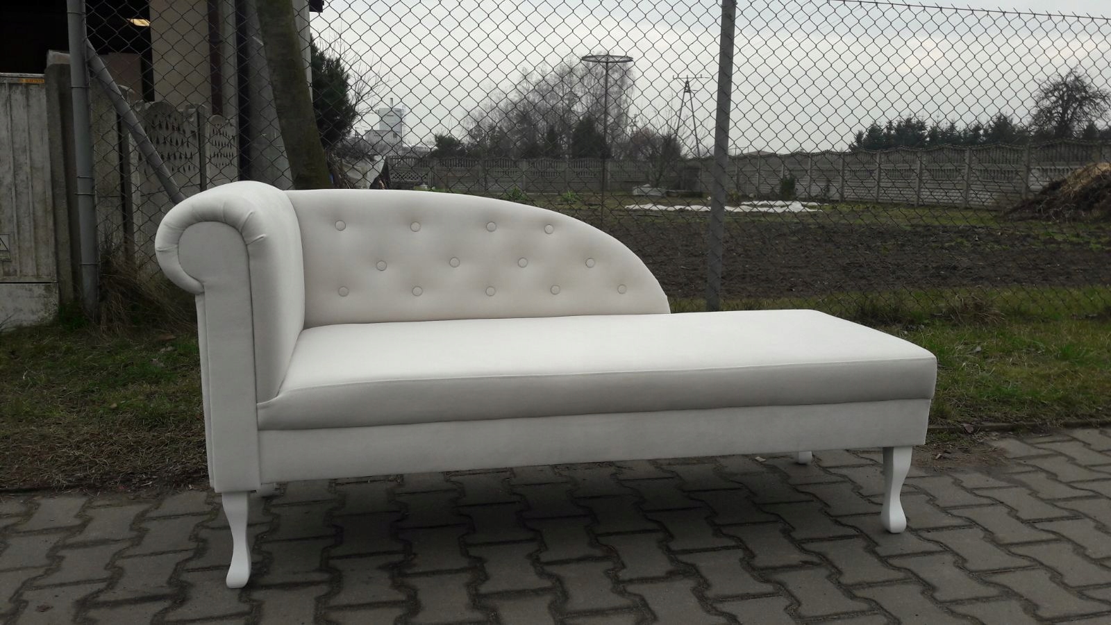 SZEZLONG LEŻANKA 152X60X70. PIĘKNIE PIKOWANY MOŻE BYĆ GUZIKAMI ZWYKŁYMI LUB SWAROWSKIEGO. NOGI DO WYBORU BIAŁE BRĄZOWE CZARNE LUB NATURALNE. DO WYBORU BOCZEK Z PRAWEJ LUB LEWEJ STRONY. W PRZYPADKU BRAKU INFORMACJI WYSYŁAMY SZEZLONG LEWY. PIĘKNIE SIE PREZENTUJE. ZAPRASZAMY NA NASZE POZOSTAŁE AUKCJE.