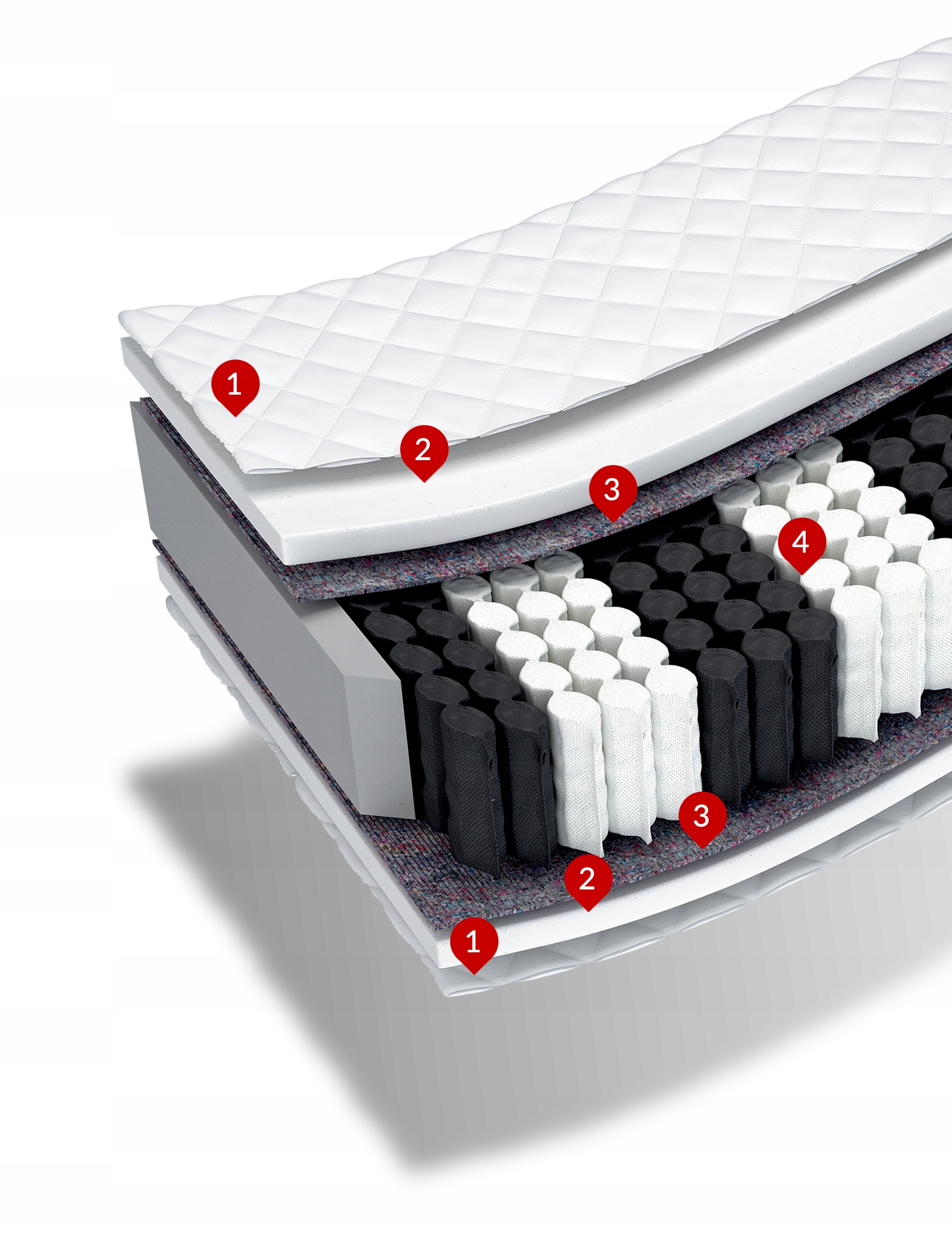 Dzięki strefom o zróżnicowanej twardości zapewnia ergonomiczną pozycję ciała podczas wypoczynku. Niezależna praca sprężyn eliminuje efekt wyginania się dużej powierzchni materaca przy nacisku na jego małą powierzchnię, dzięki czemu wszelkiego rodzaju obracanie, czy wiercenie nie będzie odczuwalne dla drugiej osoby.