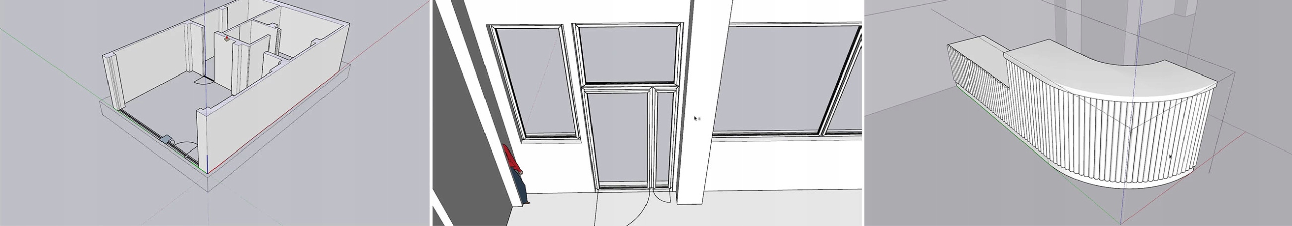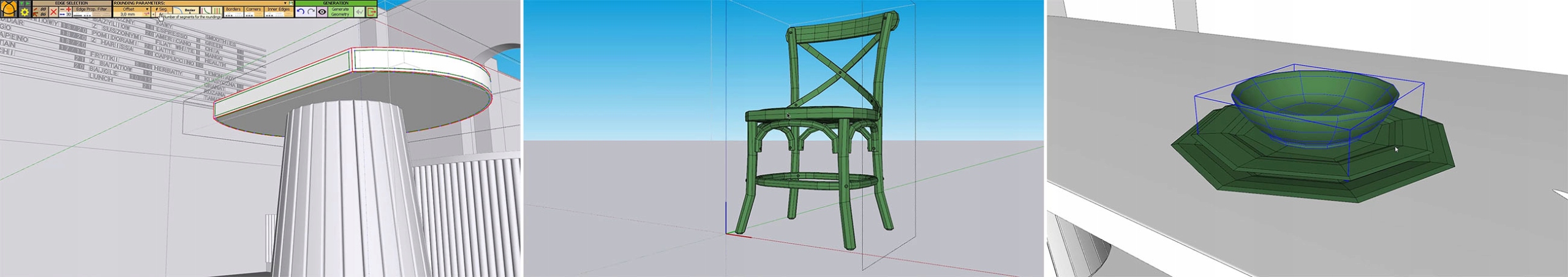 Materiał zaczyna się od modelowania. Najpierw na podstawie rzutu architektonicznego powstają bryły pomieszczeń; potem stolarka okienna i drzwiowa oraz poszczególne elementy wyposażenia.