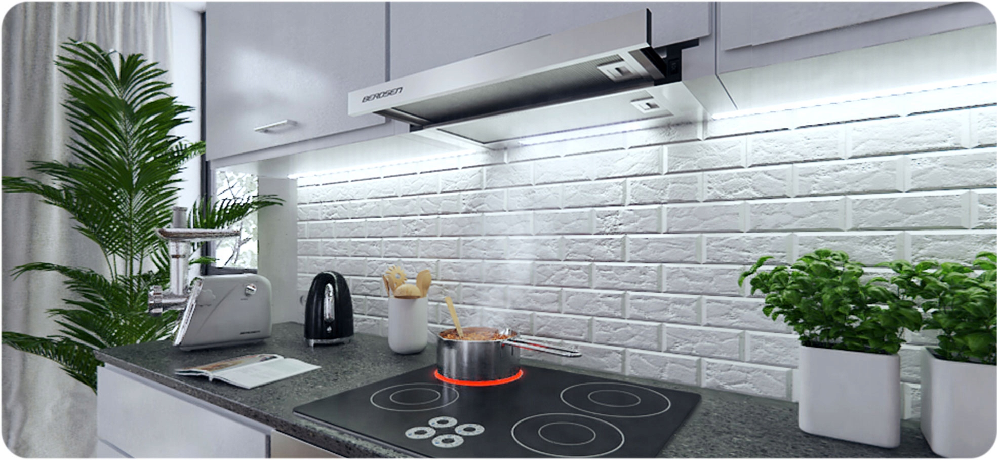 Вытяжка может работать в 2 режимах-вытяжка и поглотитель. Вытяжка требует подключения для дымохода или вентиляции. Когда нет такой возможности, вытяжка Berdsen может работать как поглотитель. Просто установите сменные угольные фильтры.