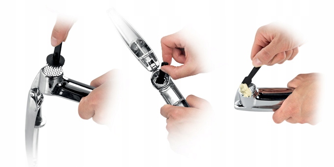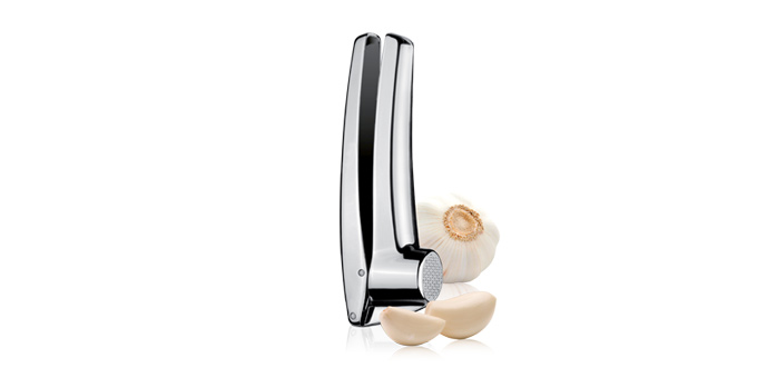 Pozwala na łatwe wyciskanie czosnku, wyposażony w wielofunkcyjny wkład do czyszczenia. Wykonano z wytrzymałego stopu metali szlachetnych, wkład z jakościowego tworzywa sztucznego. Można myć w zmywarce.