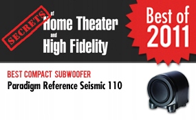 Subwoofer aktywny PARADIGM SEISMIC 110 otrzymał nagrodę "Najlepszy subwoofer kompaktowy" wg serwisu Secrets of Home Theatre and Hi Fidelity.