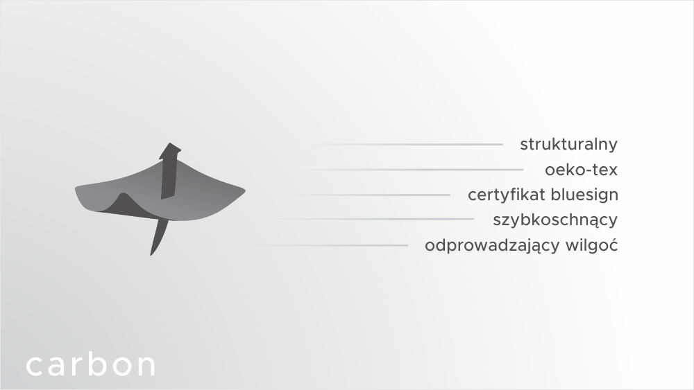 Koszulka karbon to produkt, którzy sprawdzi się zarówno jako pierwsza, jak i druga warstwa. Możesz ją założyć na koszulkę z krótkim rękawem aby nieco się ogrzać, bądź jako pierwsza warstwa w chłodniejsze dni. Dlaczego warto wybrać włókna karbonowe? Bo odprowadza nagromadzony ładunek elektrostatyczny, dzięki temu zapobiegamy skurczom mięśni. Najważniejsza cechą są właściwości bakteriobójcze – włókna zapobiegają namnażaniu się bakterii, a co za tym idzie nie powstaje nieprzyjemny zapach. Karbon odpowiada również za termoregulację – odprowadza nadmiar wyprodukowanego ciepła. Do tego materiał jest niezwykle delikatny – praktycznie nie czuć, że masz coś na sobie. Czarne włókna karbonowe powinny znajdować się po stronie mającej kontakt ze skórą. W przeciwieństwie do konkurencji traktujemy to poważnie i prawidłowo czarne włókna są wewnątrz koszulki. Zwróć uwagę, że karbon to nie ozdoba zewnętrznej strony koszulki, a istotny element, który prawidłowo działa w kontakcie z Twoją skórą.