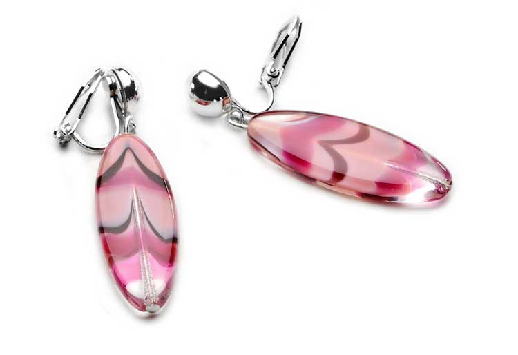 Długie różowe klipsy czeskie z błyszczącego szkła przezroczystego z przebarwieniami w bardzo modnym w tym sezonie /2018/ kolorze brudnego różu. Produkt markowy czeskiego JABLONEXU firmy znanej z wysokiej jakości..