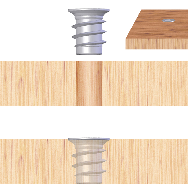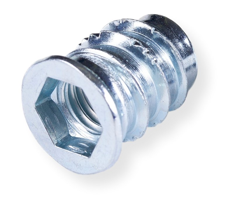Монтаж муфты должен быть выполнен путем сверления отверстия в дереве или плите. В зависимости от типа муфты и материал, в который мы хотим сделать монтаж мы делаем отверстие и скос для фланца. Затем вкручиваем муфту с помощью шестигранного ключа. Митинг fi 10 мм, для муфты с внутренней резьбой M8.