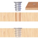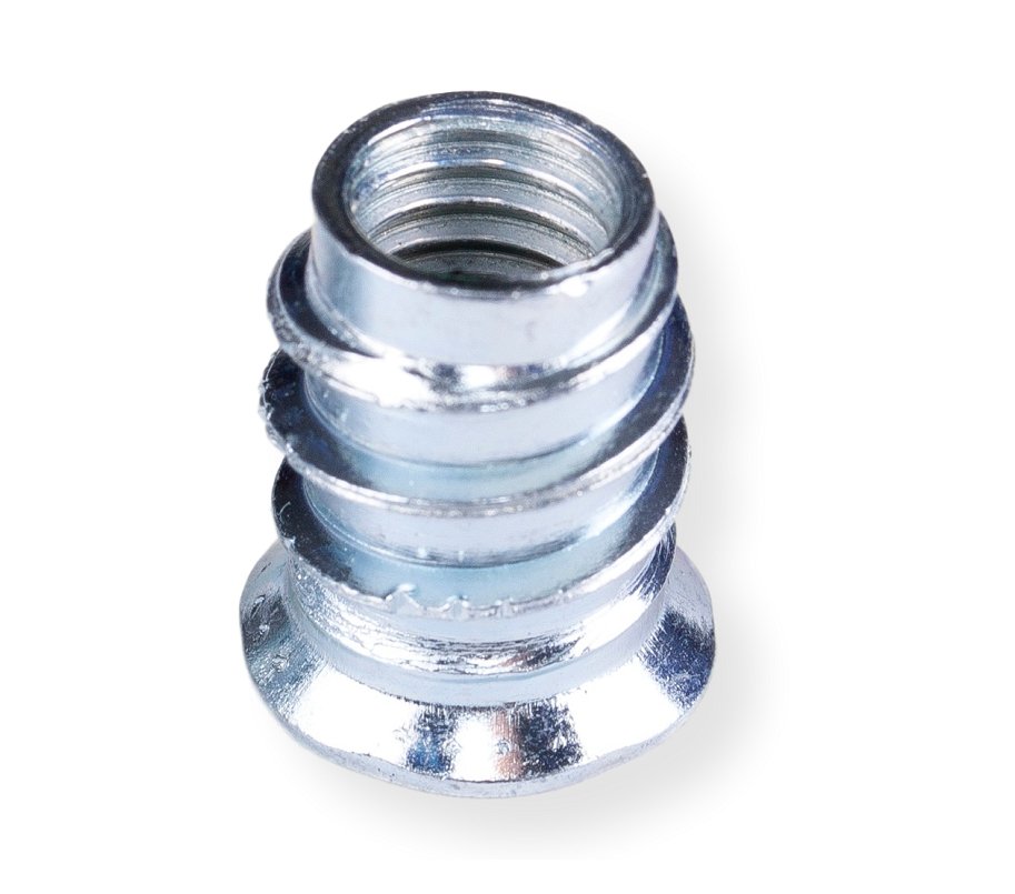 Mufa jest wykonana ze stali – idealnie nadaje się do montażu w płycie oraz drewnie – miękkim (sosna, brzoza) oraz twardym (buk, dąb, jesion, grab). Oferowane na innych aukcjach mufy znalowe nie nadają się do twardych materiałów, ponieważ mogą uszkodzić się podczas wkręcania, gdyż jest to tylko odlew ciśnieniowy. W przypadku muf, wytwarzanych metodą COLD-FORGING, oferowanych na tej aukcji nie ma możliwości ich uszkodzenia podczas wkręcania w twarde drewno.