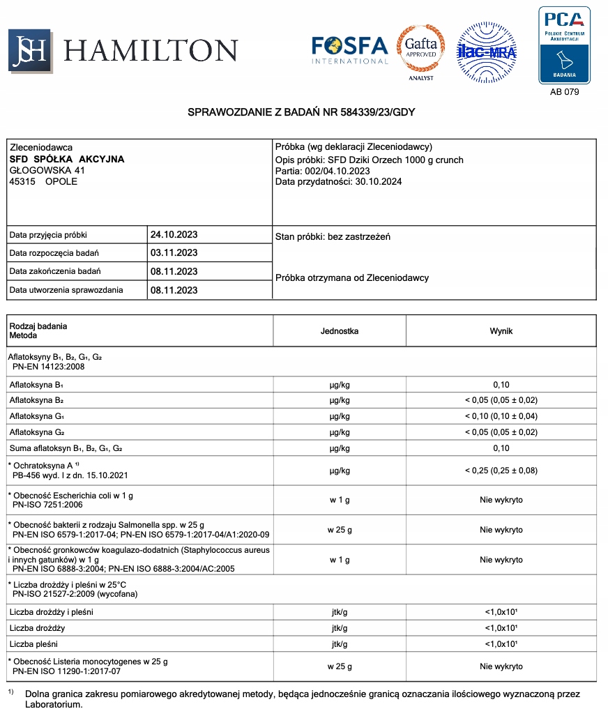 SFD Дикий орех из экологически чистых культур. отвердителей, соли или других ненужных добавок, что делает его источником полезных жиров и белки. Арахис, который вы найдете в нашем креме, является ценным источником кислот ненасыщенных жиров, способствующих снижению уровня холестерина в крови и снижение риска развития атеросклероза и заболеваний кровеносной системы.