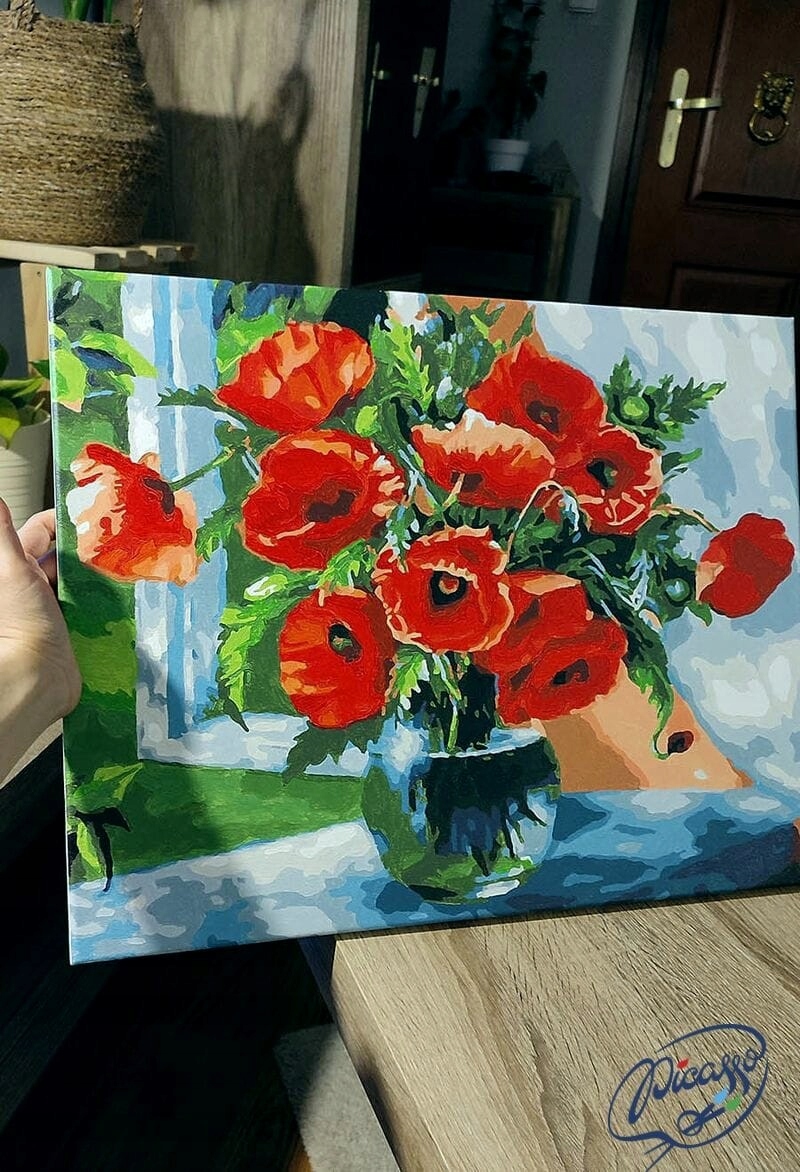 На холсте напечатаны зоны с цифрами, которые необходимо закрасить с числовым присвоением краска.