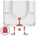 W komplecie zawarte są zawiasy z funkcją wolnoopadającą i łatwego wypinania. Jest to rozwiązanie idealne dla każdego. Funkcja wolnego opadania minimalizuje ryzyko uszkodzeń ceramiki które mogłyby powstać przy gwałtownym uderzeniu, jest również dużo bezpieczniejszym rozwiązaniem niż tradycyjne deski gdy w domu znajdują się małe dzieci.