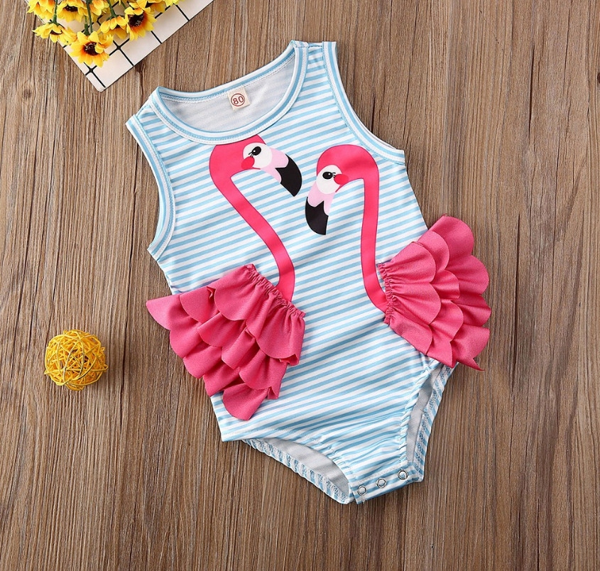 Гламурный наряд для маленькой принцессы с красивой украшением в виде фламинго и розовыми оборками.