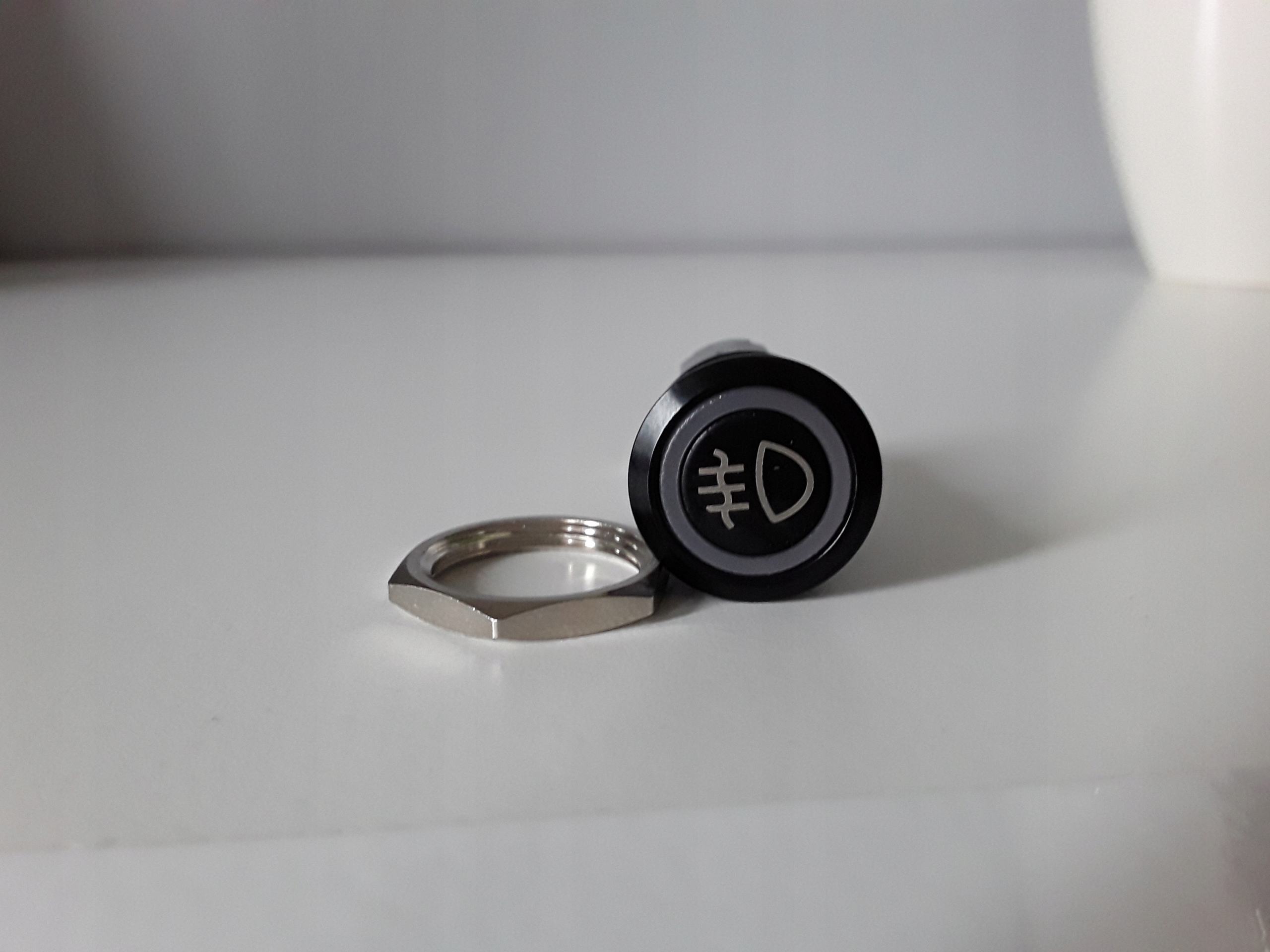 Włącznik tylnego światła przeciwmgielnego na otwór średnicy 16 mm z pomarańczowym podświetleniem.