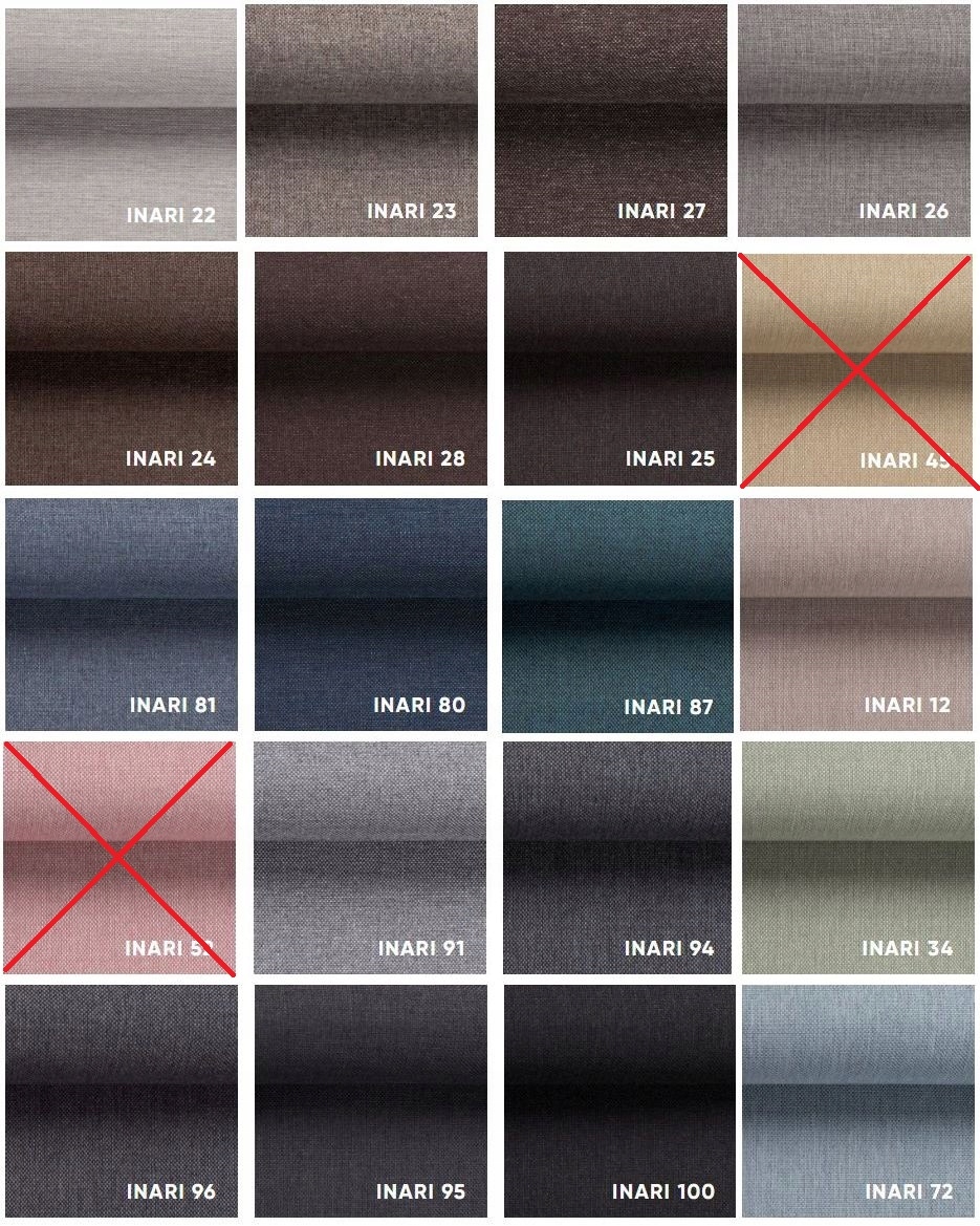Инари-это ткань из группы плетенок с мелким переплетением нитей. На ощупь чуть шероховатая, с ощутимой фактурой. Ткань плотная и устойчивая к истиранию, а простые и сильные плетение делает это Инари идеальный материал для ежедневного использования. Материал Инари имеет высокую стойкость к выцветанию, поэтому не нужно бояться, что красивый цвет мягкой мебели исчезнет.
