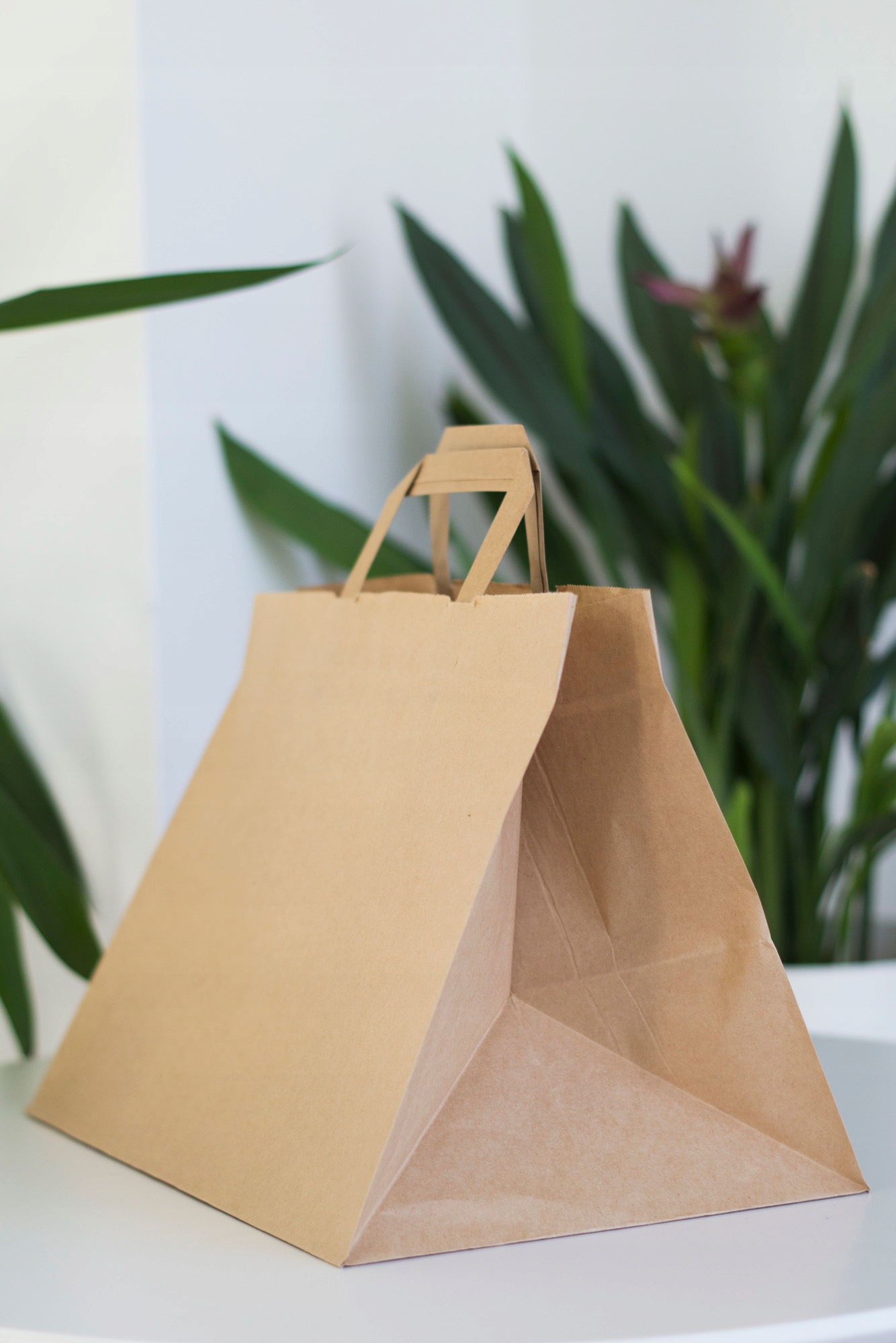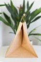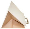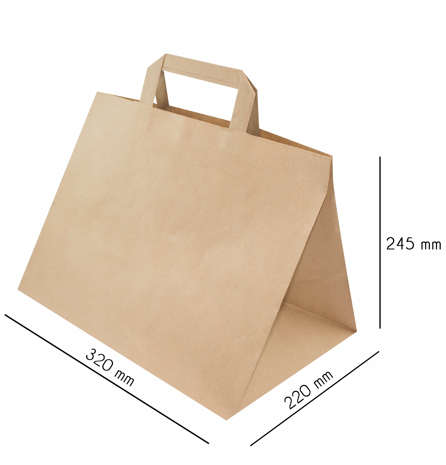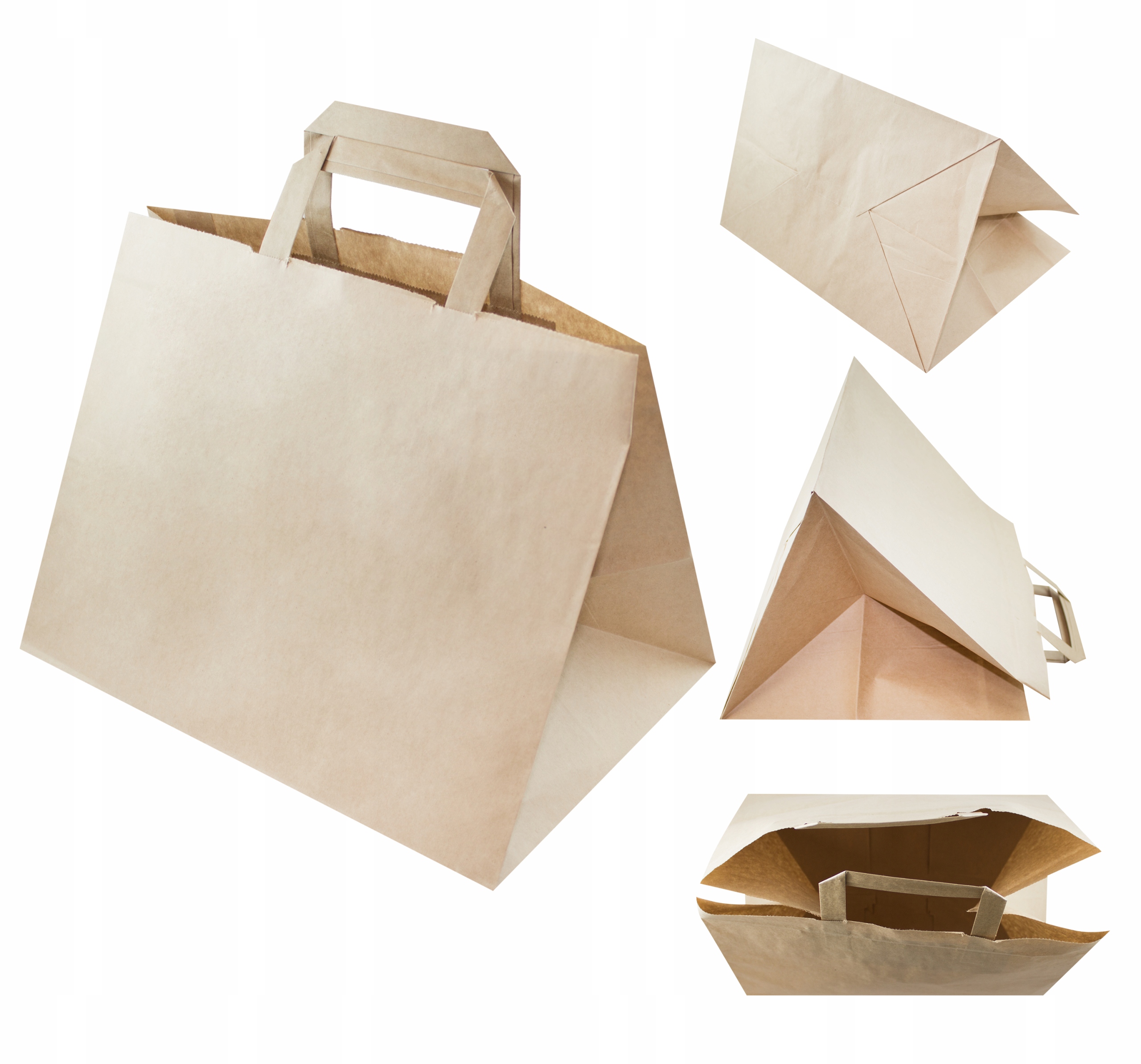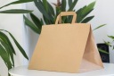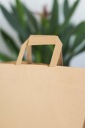 Torby papierowe z uchwytem płaskim wykonane są z brązowego papieru KRAFT, uchwyty toreb klejone wewnątrz toreb.