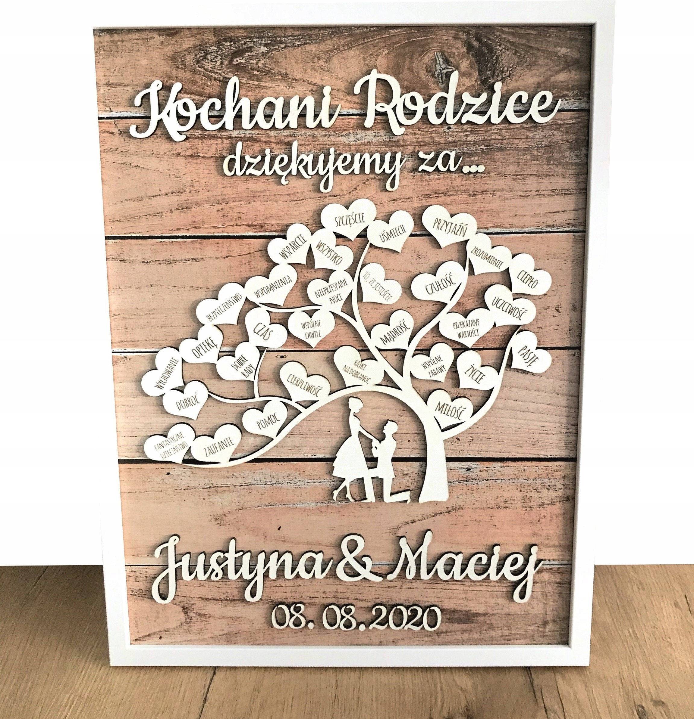 - rama oraz grafika (drzewo, napisy, serca...) - drewno