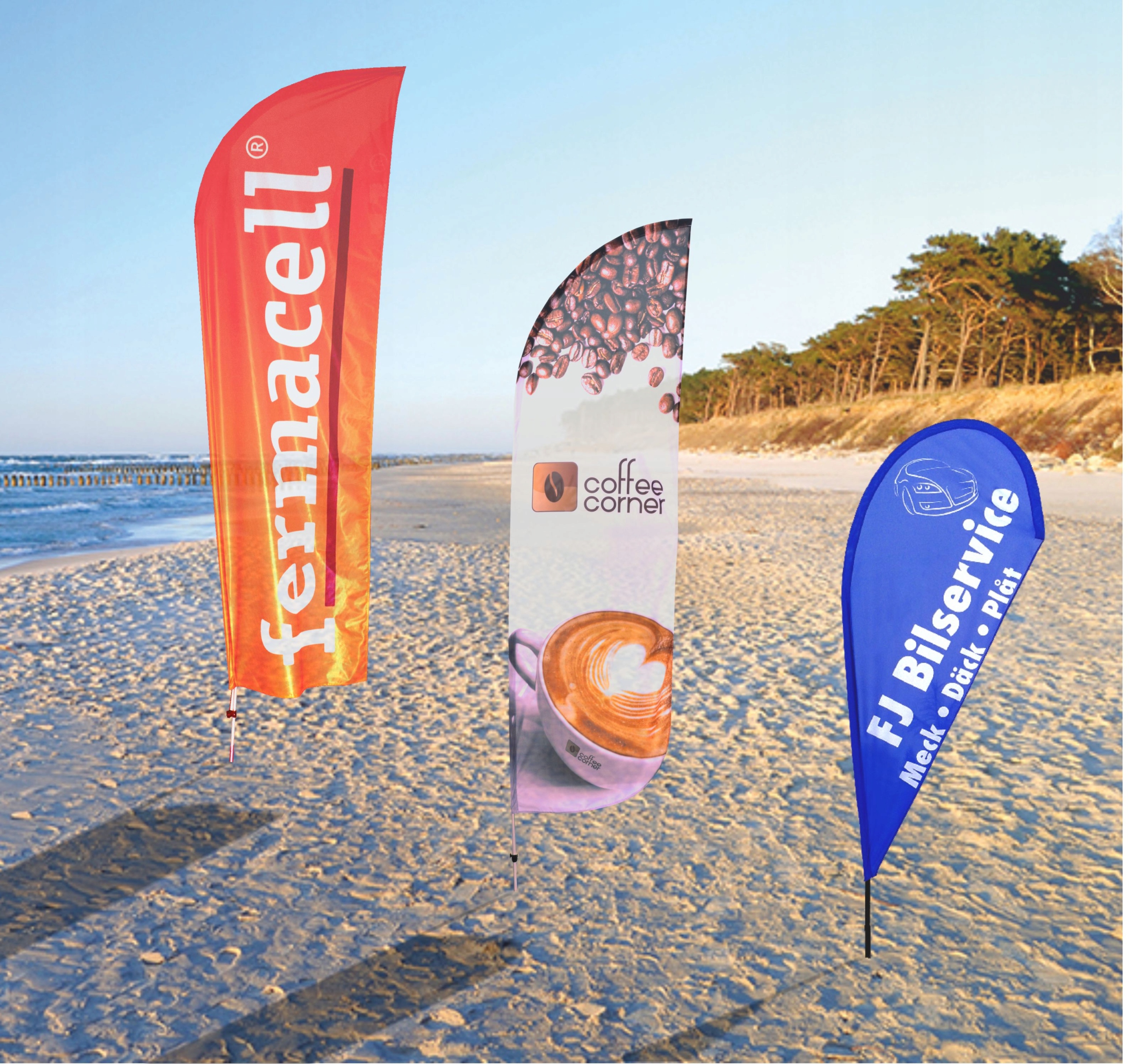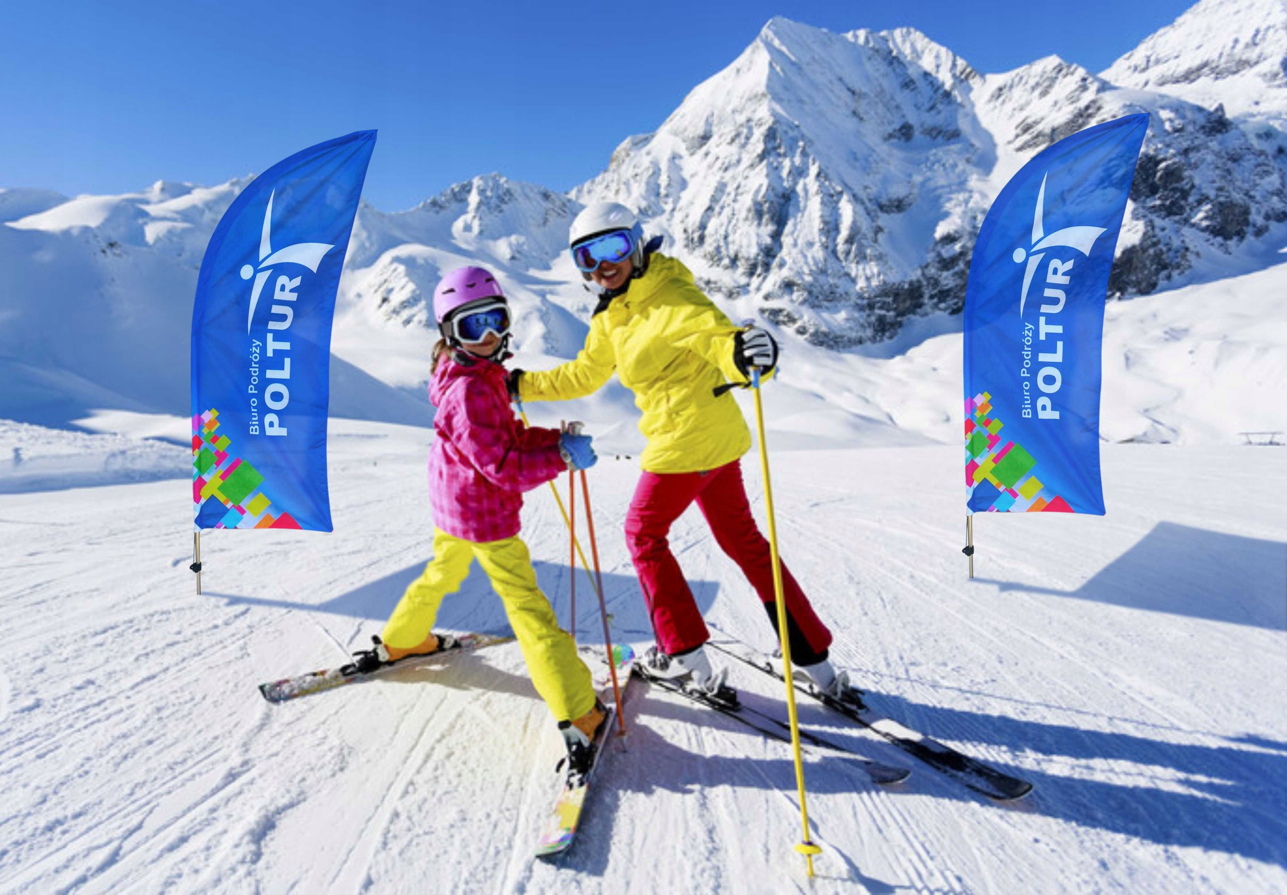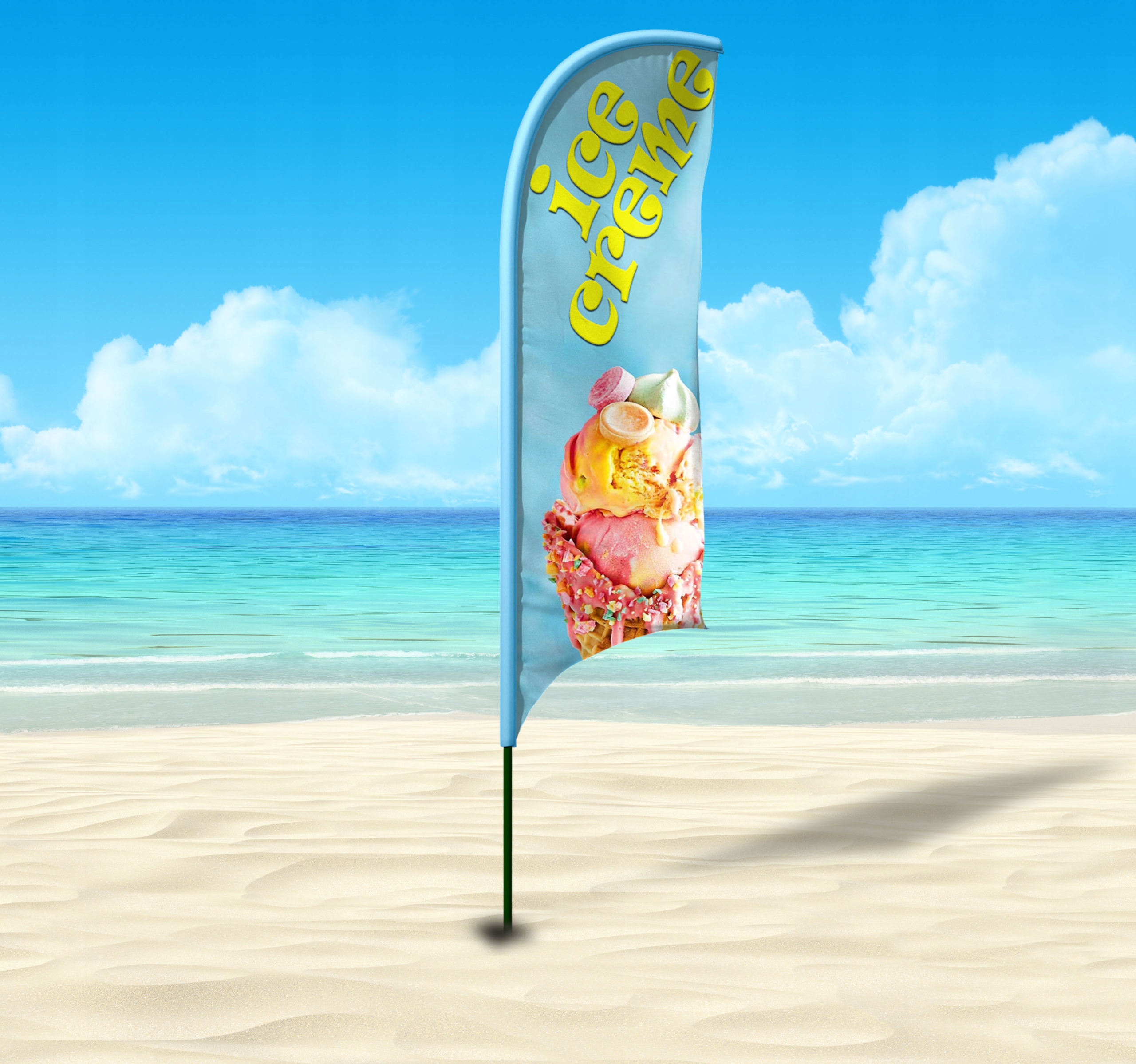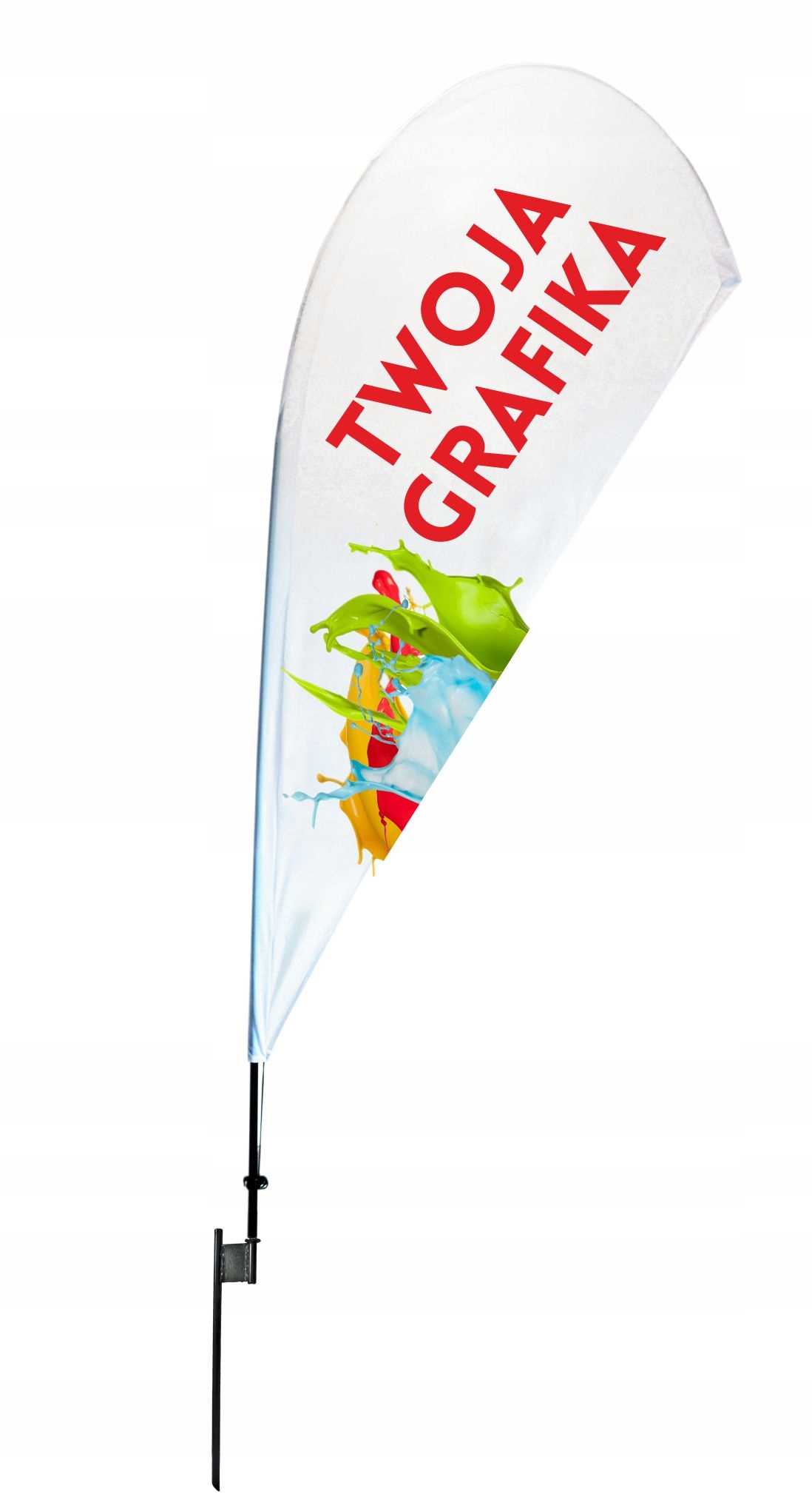 Flaga Reklamowa typu Winder na maszcie 290cm podstawą wbijaną w podłoże.