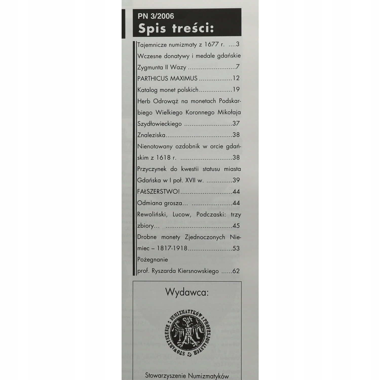 Numer Przeglądu Numizmatycznego nr 54 - 3/2006