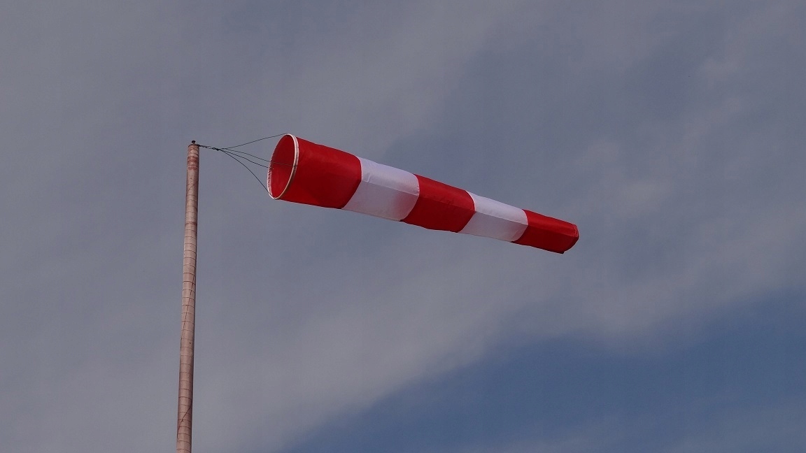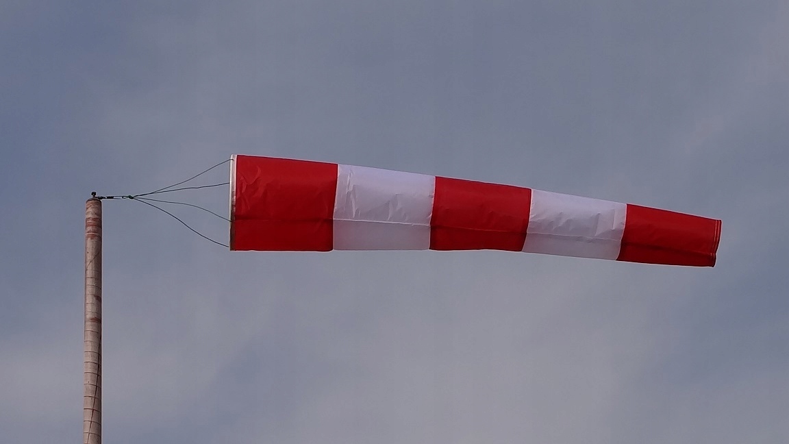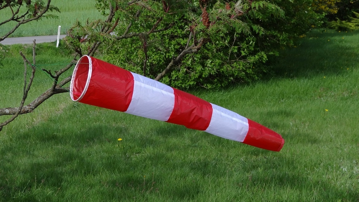 Рукав, указывающий направление ветра и позволяет ориентировочно оценить его силу в цвете бело-красный.