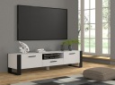 Niezwykle elegancka i stylowa szafka pod telewizor do salonu. Charakteryzuje się nowoczesnym i przyjemnym dla oka wyglądem - o jej uroku stanowią duże czarne nogi w formie ramy, które pięknie kontrastują z resztą mebla. Szafka posiada trzy zamykane półki oraz jedną otwartą półkę na dekodery lub konsole.