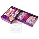 Упаковка содержит 50 игральных карт, 150 вопросы и инструкции.