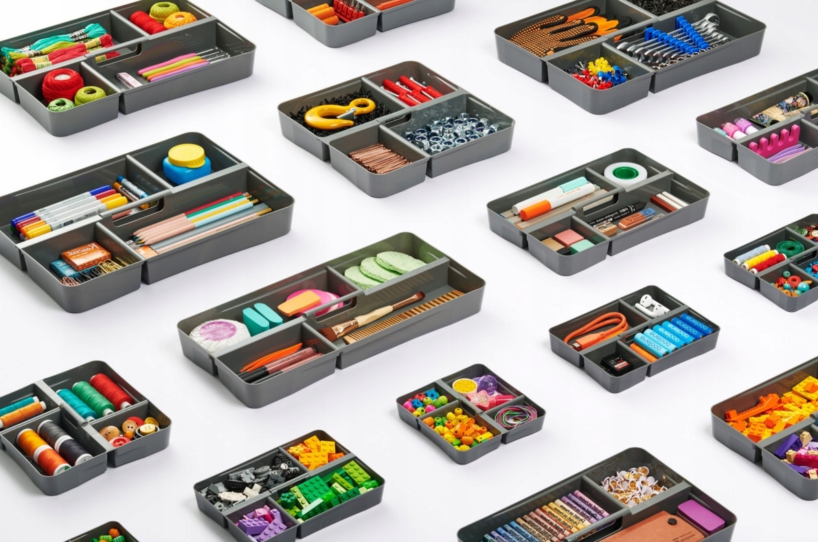 Przegrody pozwalają na posegregowanie drobnych rzeczy i nie pozwalają na ich mieszanie się.