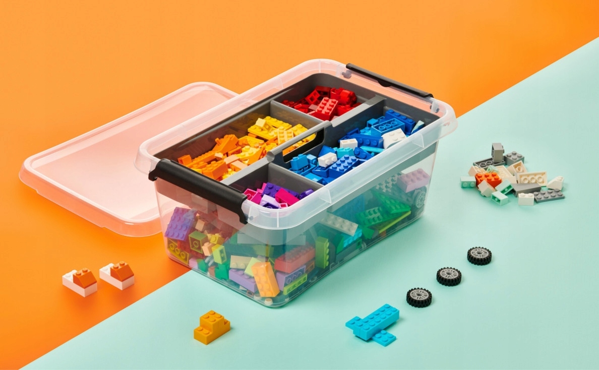 ✅Sprawdzi się zarówno jako pojemnik na akcesoria do szycia (igły, nici, włóczki, kłębki itp.) a także jako skrzynka na śrubki i narzędzia oraz klocki.
