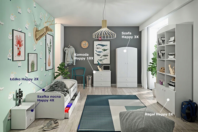 Мебель из коллекции Happy - увлекательное, увлекательное приключение для каждого ребенка. Прямо сейчас сделайте покупку вневременной тумбочки Happy 4X по очень привлекательной цене, так что вы сэкономите до 70 зл и на долгие годы насладитесь уникальной мебелью в комнате вашего ребенка!