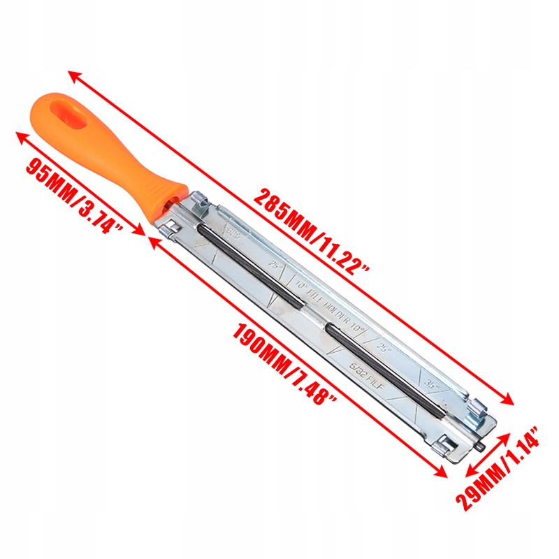 Ostrzałka do piły łańcuchowej pasuje dla wszystkich małych elektrycznych i spalinowych pił łańcuchowych.