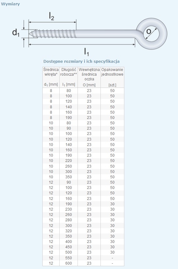 wkręt oczkowy do mocowania rusztowań, oczko spawane, ocynkowany na biało, do stosowania z dyblami rozporowymi