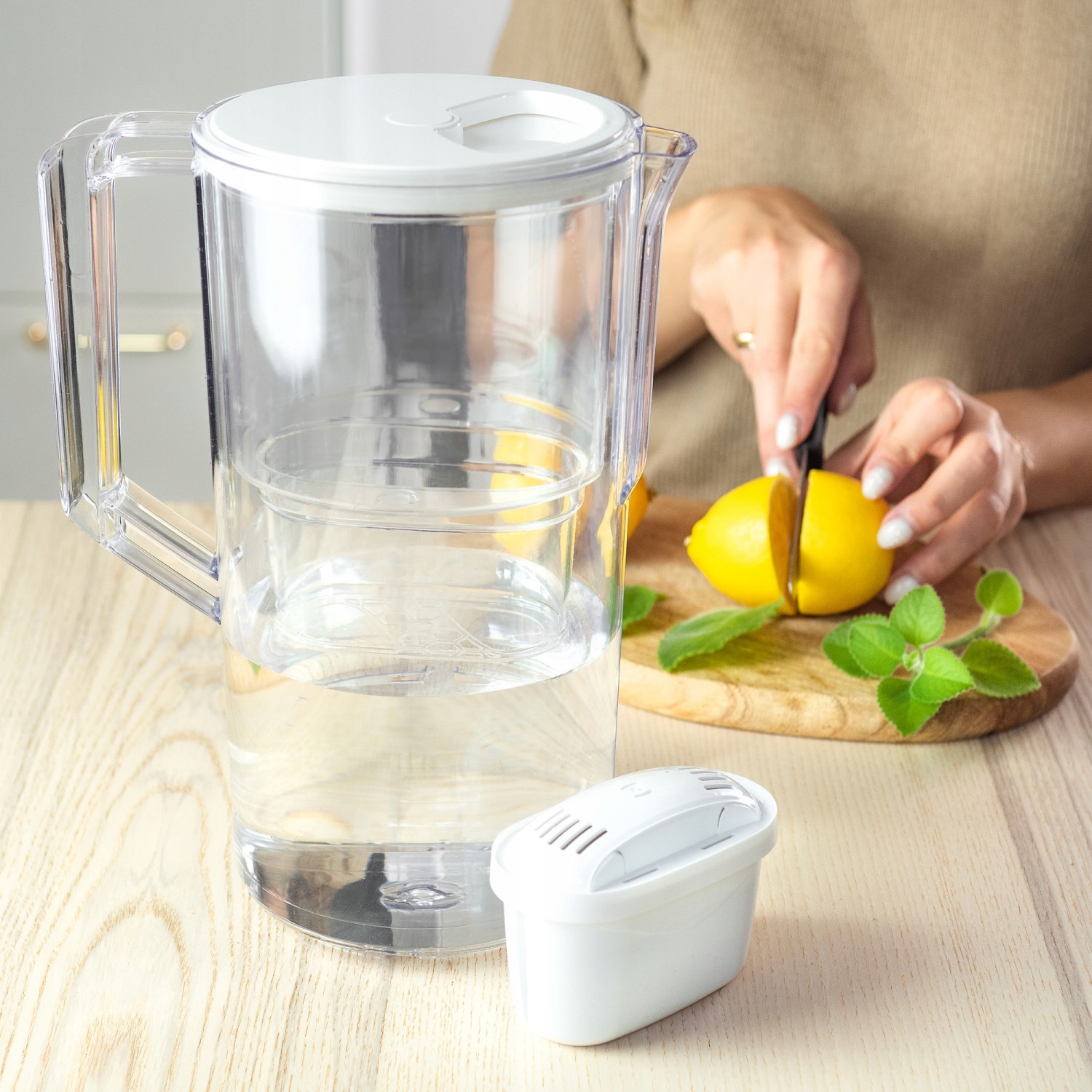 Его эргономичный дизайн позволяет легко заполнять кувшин с водой и быстрая замена фильтрующего картриджа. Таким образом, вы можете наслаждаться чистой водой о отличный вкус без необходимости сложных процедур обслуживания.