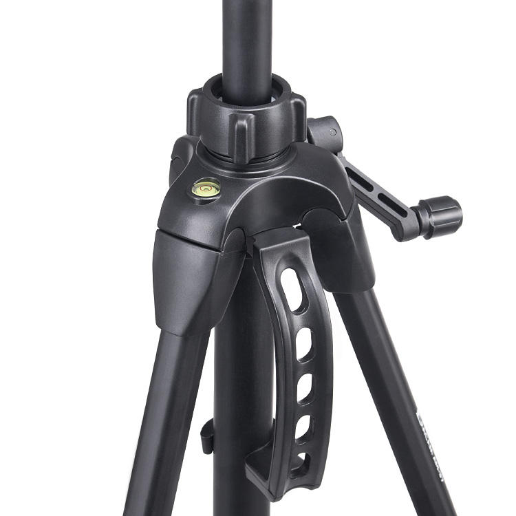 Телескопически складывающиеся ножки штатива может выдвигаться независимо, благодаря чему мы можем отрегулировать положение штатива рельеф местности. Еще одним преимуществом конструкции является телескопическая возможность сборки штатива на время транспортировки к размеру только 64см. Для улучшения стабильности в разложенном виде ноги блокируются так называемые trójnikiem.