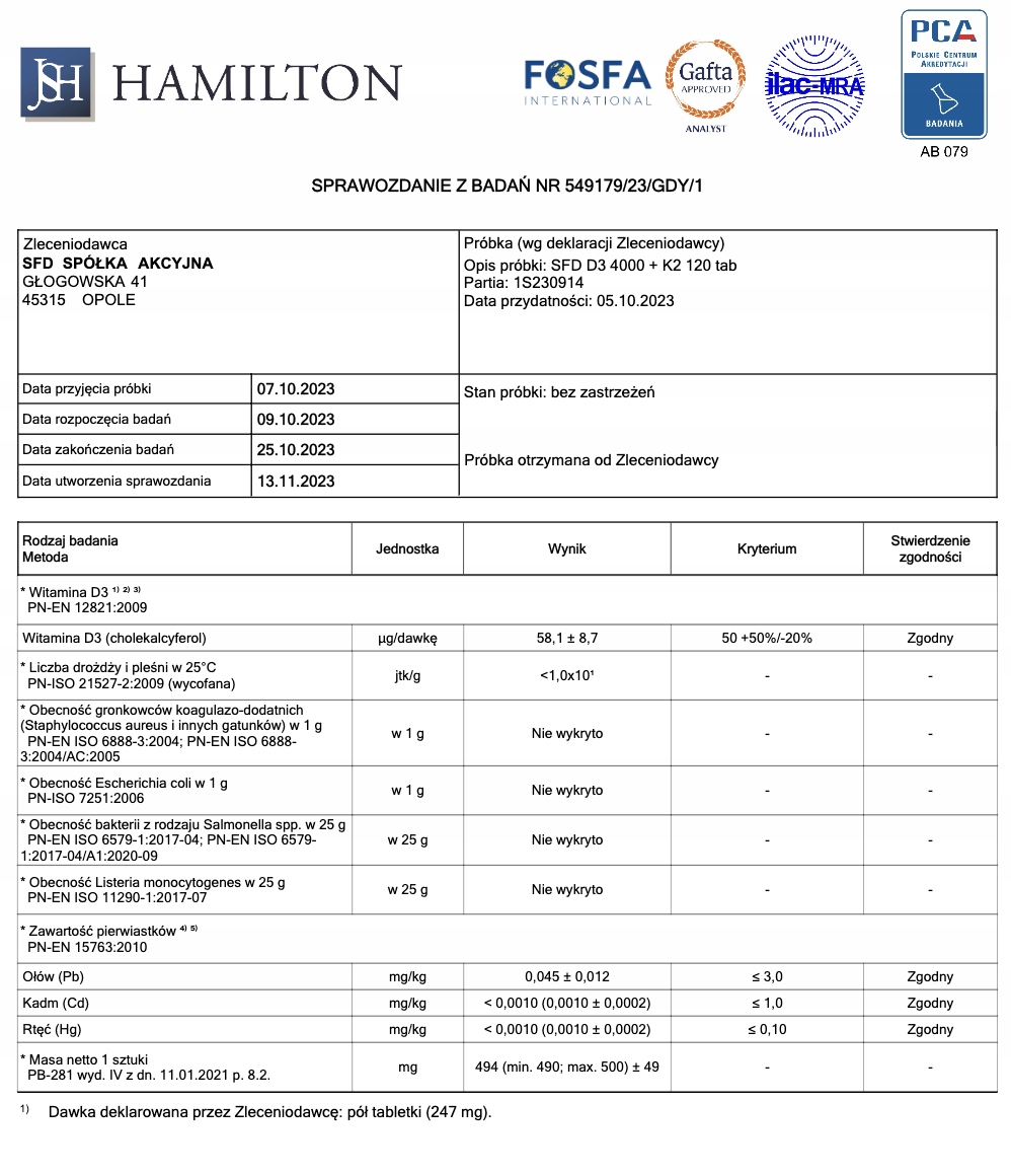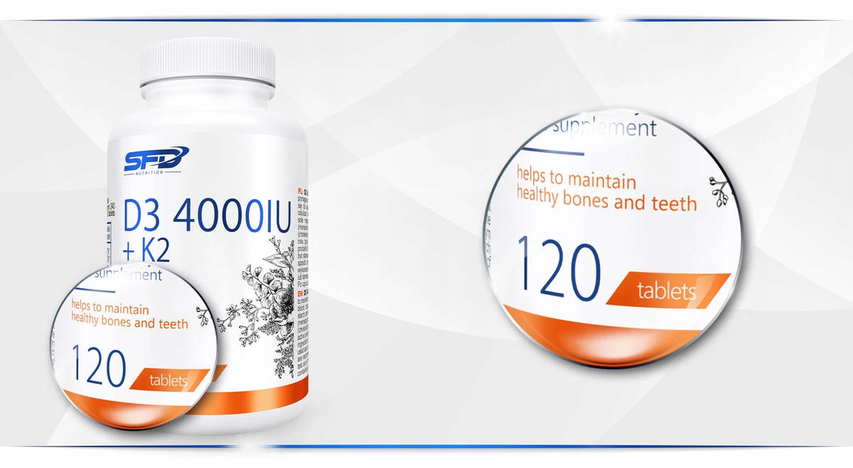 SFD D3 4000IU K2 Регулярное потребление витамина D3 помогает правильно усваивать кальций, поддерживать здоровье костей зубов и благотворно влияет на правильное функционирование мышц и иммунной системы.