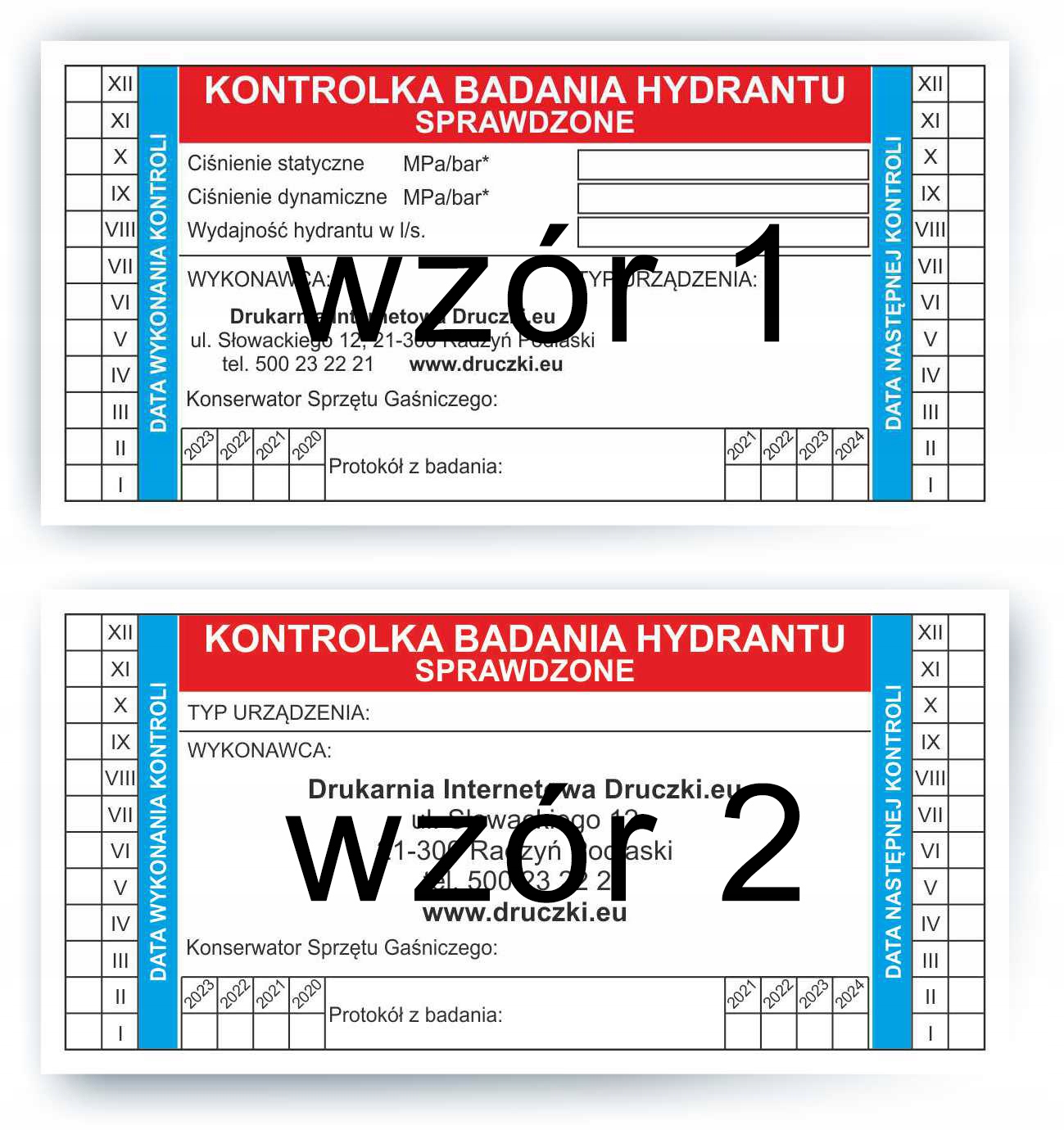 Etykieta kontrolka hydrantu wykonana w formie naklejki samoprzylepnej. Kontrolka badania hydrantu służy do znakowania, legalizacji sprzętu gaśniczego.