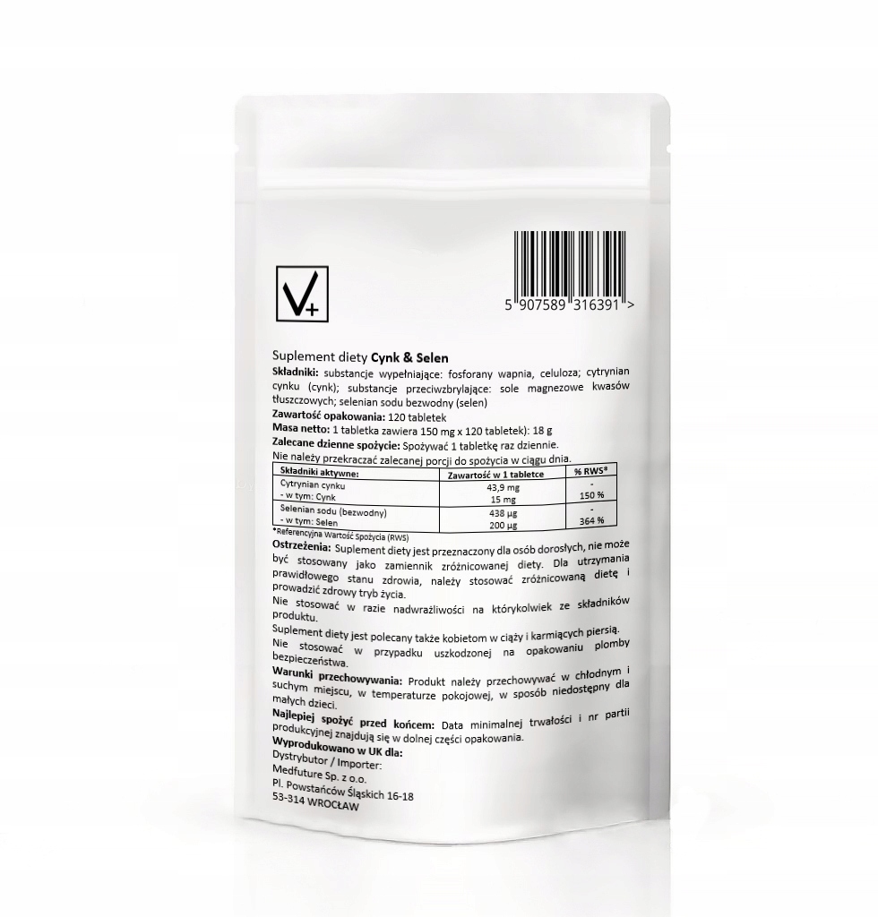 Składniki: substancje wypełniające: fosforany wapnia, celuloza; cytrynian cynku (cynk); substancje przeciwzbrylające: sole magnezowe kwasów tłuszczowych; selenian sodu bezwodny (selen)