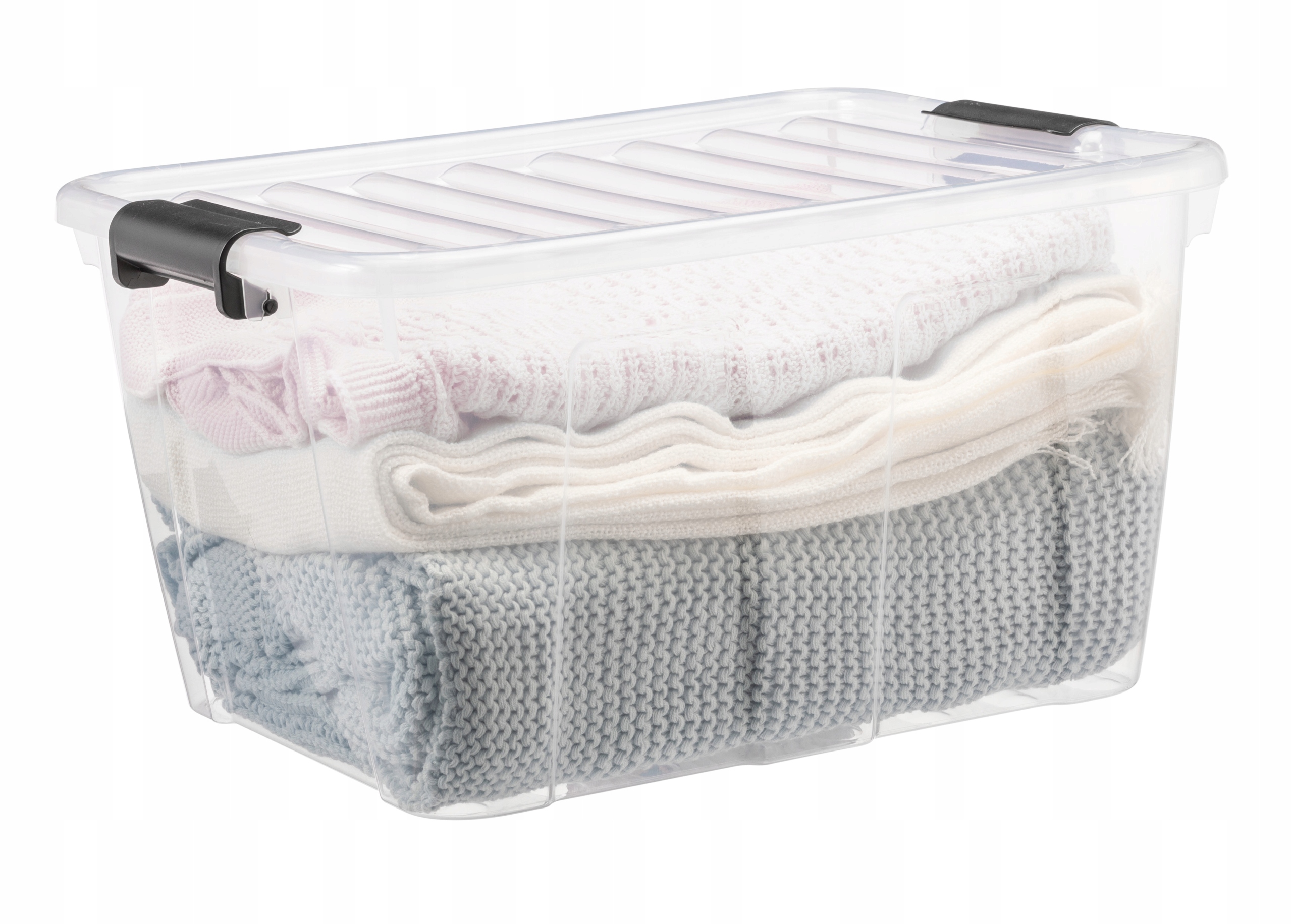Przezroczysty pojemnik w kształcie prostokątnym o pojemności 30 l , wykonany z wytrzymałego plastiku. Idealny do przechowywania różnych przedmiotów. Świetnie sprawdzi się zarówno w domowej garderobie jak i w warsztacie majsterkowicza. Pudełko jest odporne na uszkodzenia co zapewnia jego długą żywotność.