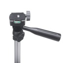 Штатив оснащен трехмерной головкой с спиртовым уровнем, имеющей стандартную резьбу 1/4 дюйм и центрирующий штифт. Головка выдвижная и фиксируется с помощью ручки, ее можно плавное регулирование.