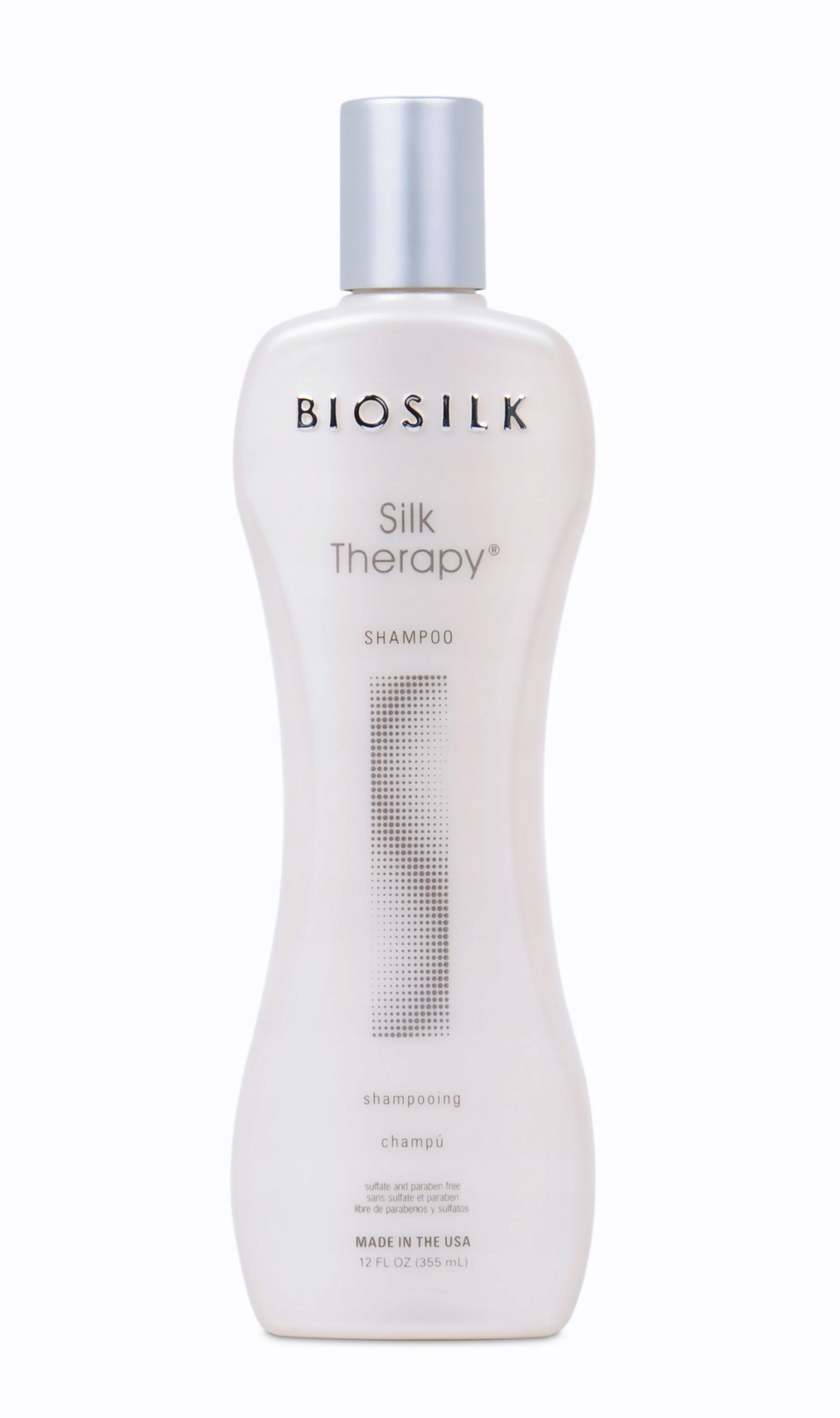 BIOSILK Silk Therapy to regenerujący, jedwabisty szampon przeznaczony do wszystkich rodzajów włosów. Zawiera proteiny jedwabiu, wyciągi roślinne i witaminy. Formuła nadaje włosom zdrowego i lśniącego wyglądu. Proteiny jedwabiu nadają włosom nawilżenia i objętości. Włosy stają się miękkie i błyszczące. Obficie się pieni, przez co jest bardzo wydajny. Ma bardzo przyjemny zapach.