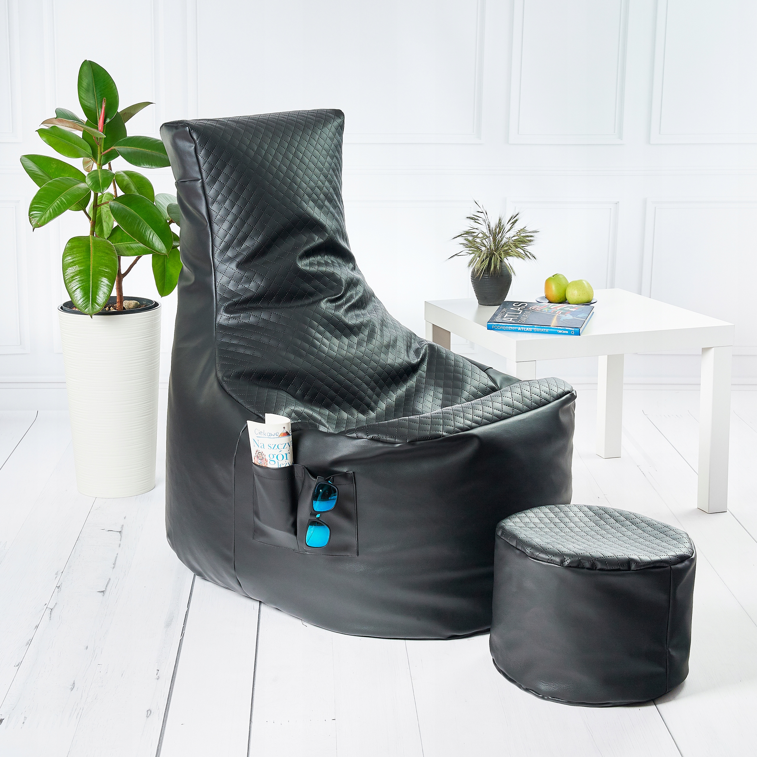 Единственный такой на польском рынке пуф комфорт. Большой, с спинка, карман на липучке и подставка для ног. Верхняя часть пуфа и подножки выполнена из стеганая ткань.Идеально подойдет для любой гостиной. Невероятно удобно, адаптируется к каждого силуэта.