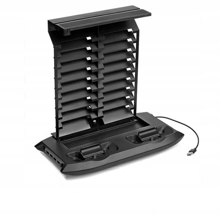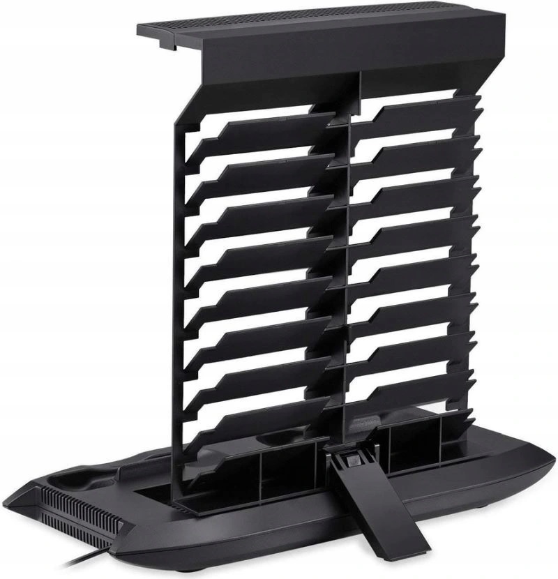 Podstawka umożliwia postawienie konsoli Xbox ONE S na bocznej ściance. Pozwala to na zaoszczędzenie miejsca. Podstawka wykonana jest z mocnego plastiku, dzięki czemu może służyć latami. Stojak wyposażony w 2 wentylatory zapewniające chłodzenie konsoli. Stacja zawiera 2 doki do padów umożliwiające ich ładowanie. Dodatkowo wyposażona jest w 4 porty USB i stojak na 18 gier. Produkt jest fabrycznie nowy.
