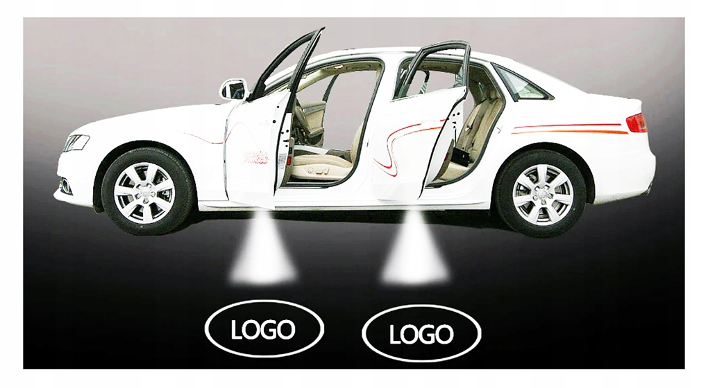 Projektor do drzwi z logiem marki oraz otwornica NISSAN