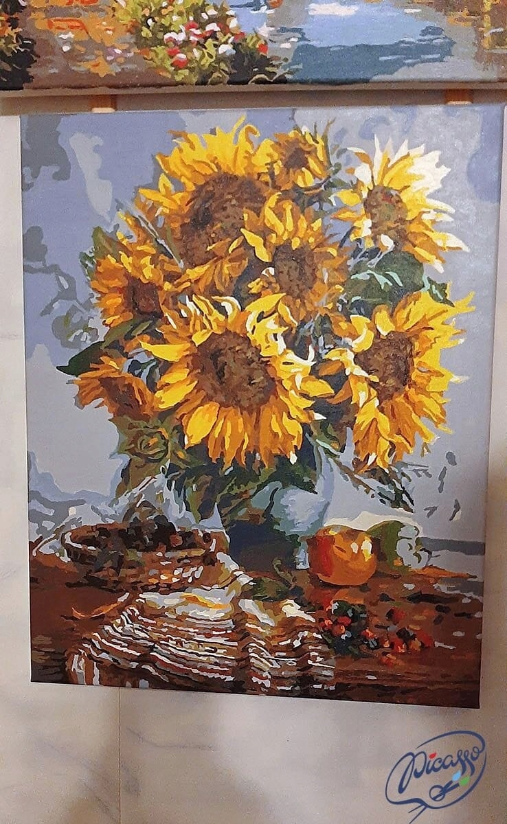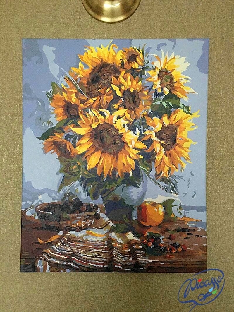 На холсте напечатаны зоны с цифрами, которые необходимо закрасить с числовым присвоением краска.