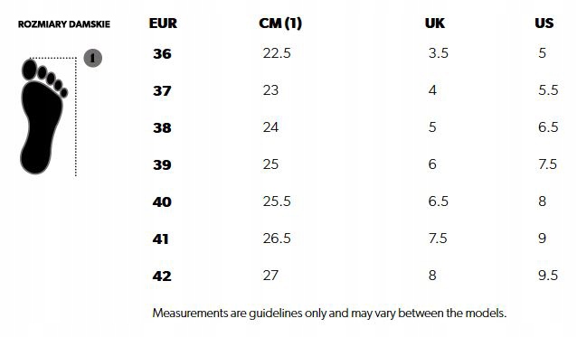 Podeszwa EVA zapewnia stabilność, przyczepność i dobrze absorbuje wstrząsy. Uszyta z mocnej siateczki cholewka zabezpiecza stopę przed przegrzaniem.