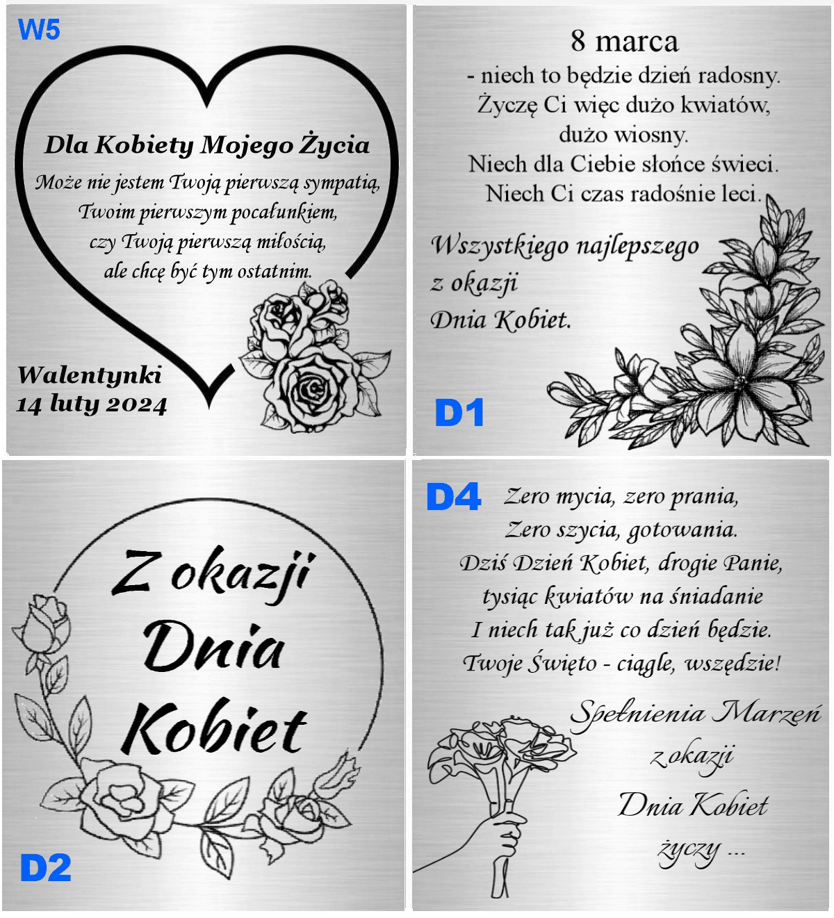 Treść graweru należy przesłać najpóźniej w ciągu 5 minut od zakupu, wszelkie zmiany oraz życzenia co do ostatecznego wyglądu graweru nie zostaną po tym czasie uwzględnione.