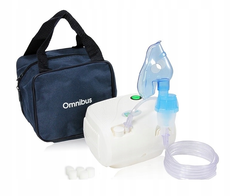 В комплект входит: компрессор (Компрессор), ингаляционная маска для детей, ингаляционная маска для детей для взрослых, фильтр (6 шт.), мундштук, носовой наконечник, бак для лекарств Omnineb 2, трубка воздуха, сумка для переноски, инструкция на польском языке.