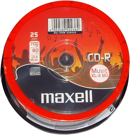 Przedmiotem aukcji są płyty firmy Maxell. Nośnik ten - CD-R - dedykowany jest do nagrań audio, które możemy zapisać zarówno w nagrywarkach komputerowych jak i stacjonarnych. Płyta ta, posiada pojemność 700 MB co odpowiada 80 min. nagrania muzycznego.