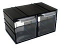 Модульная система выдвижных ящиков, позволяющая строить наборы, стены, состоящие из четырех размером с ящик. Корпус из полистирола всегда имеет одинаковый внешний размер. Система канавок позволяет соединять модули между собой. Интерьер разделен так, что в него можно вставить два, четыре, шесть или двенадцать ящиков