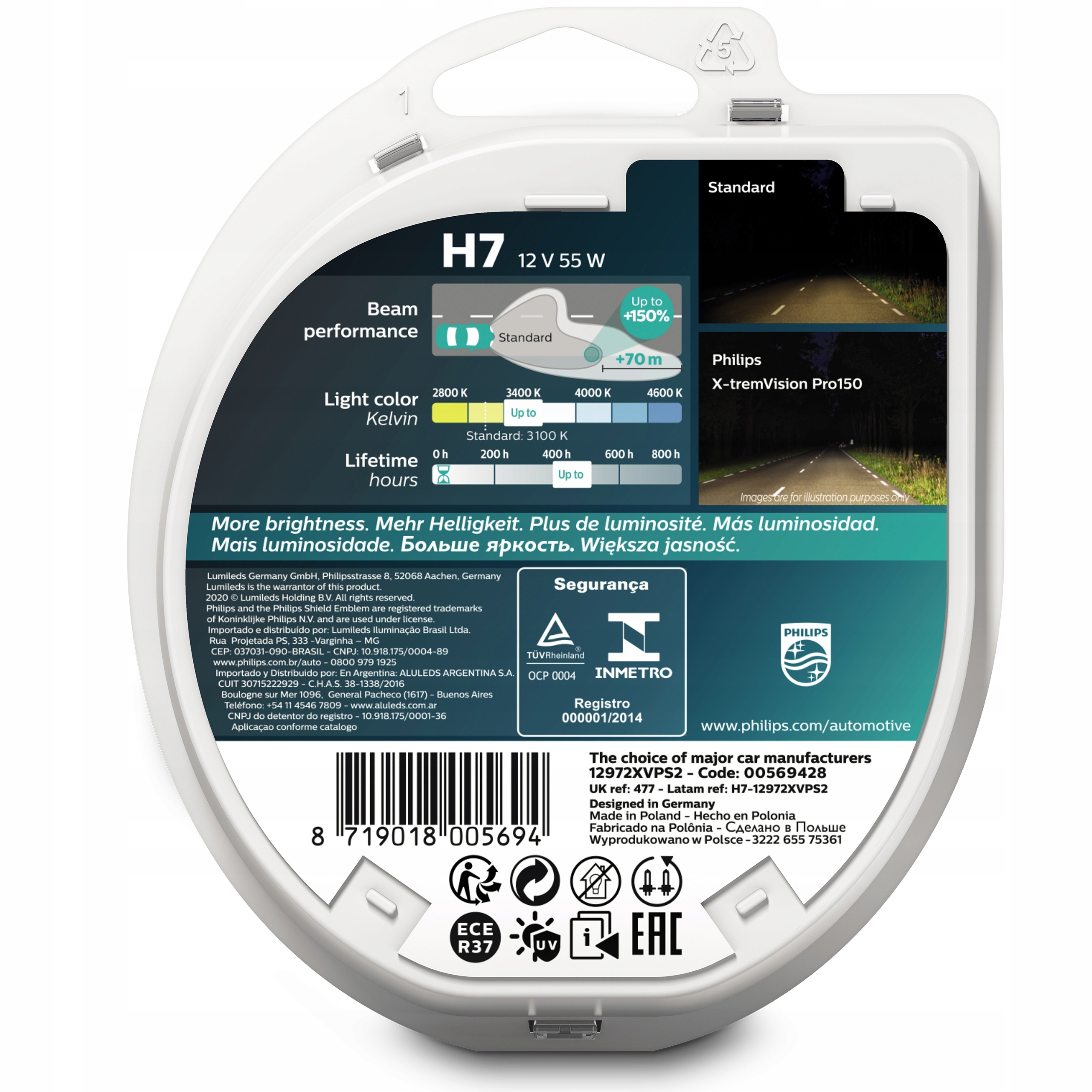 Сочетание необычайной яркости и долговечности, которые до сих пор не были доступны в такой эффективной Philips X-tremeVision pro150 обеспечивает вас и ваших близких еще больше безопасности на дороге