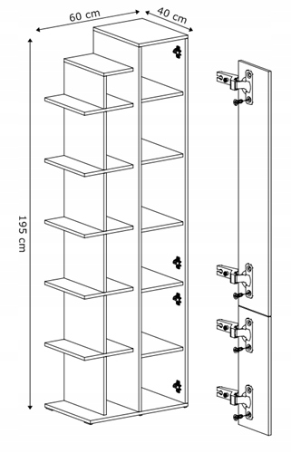 • Regał 4 (wym.: 60 / 195 / 40 cm)